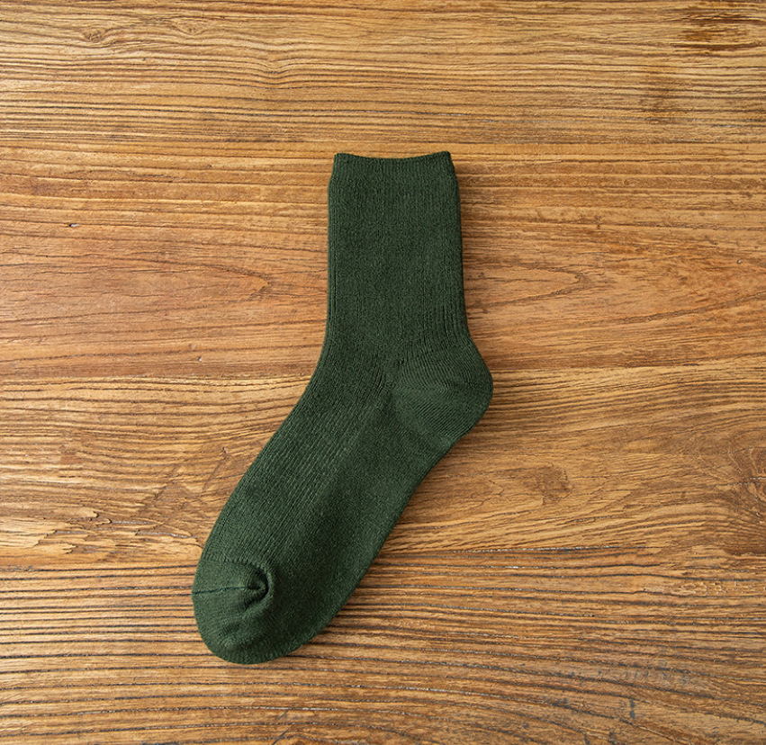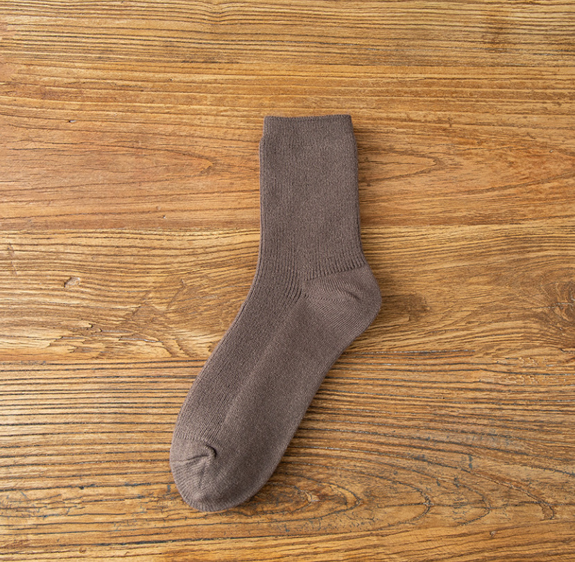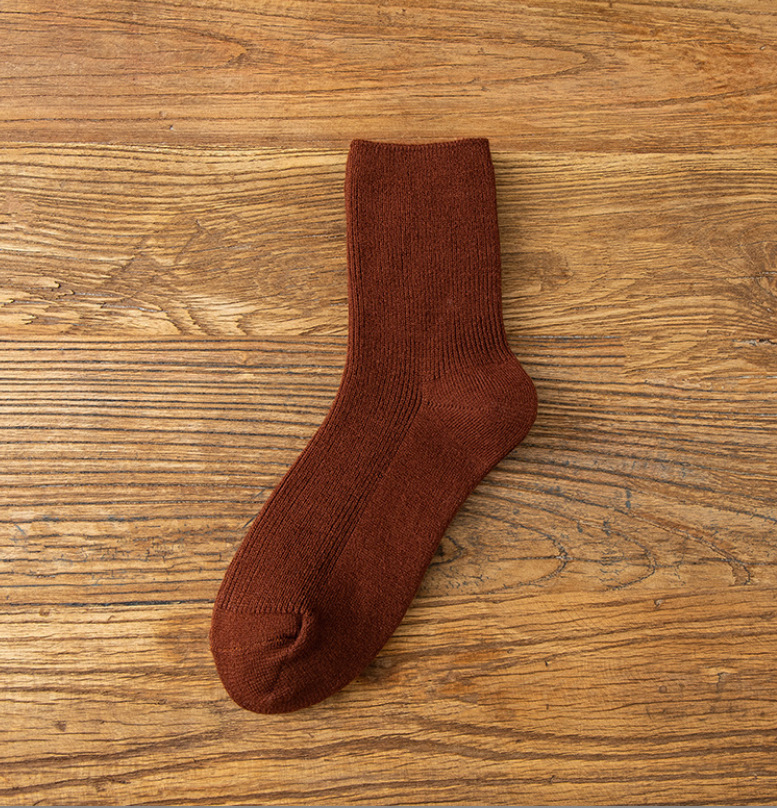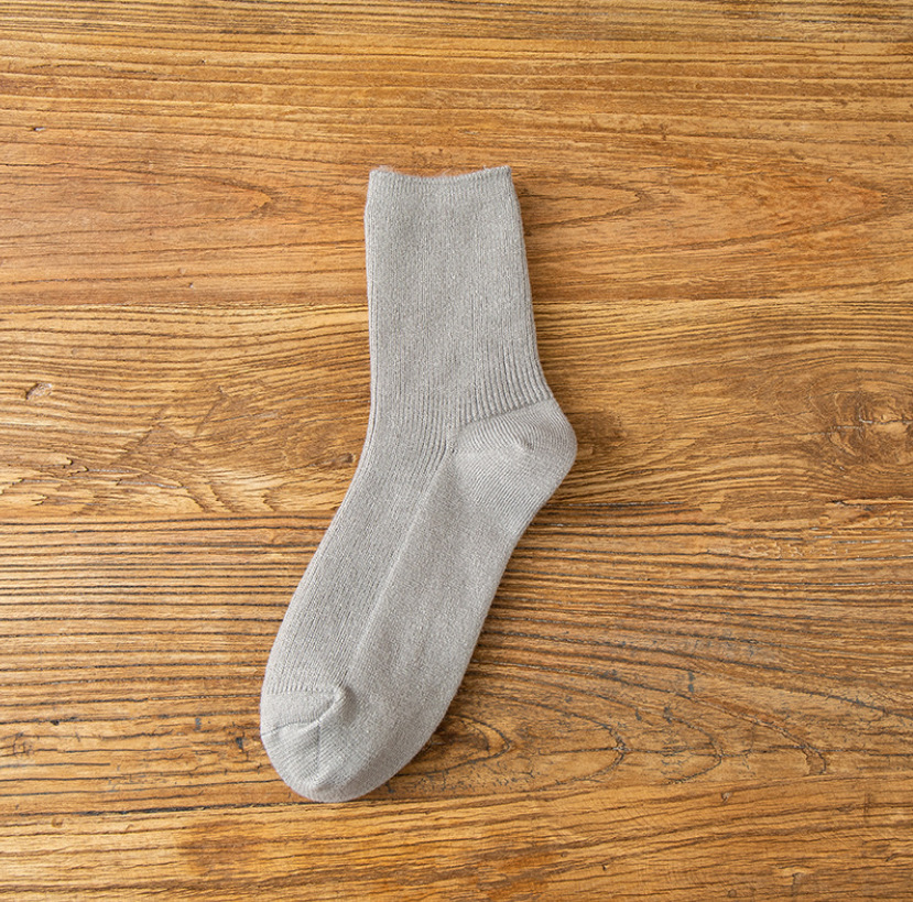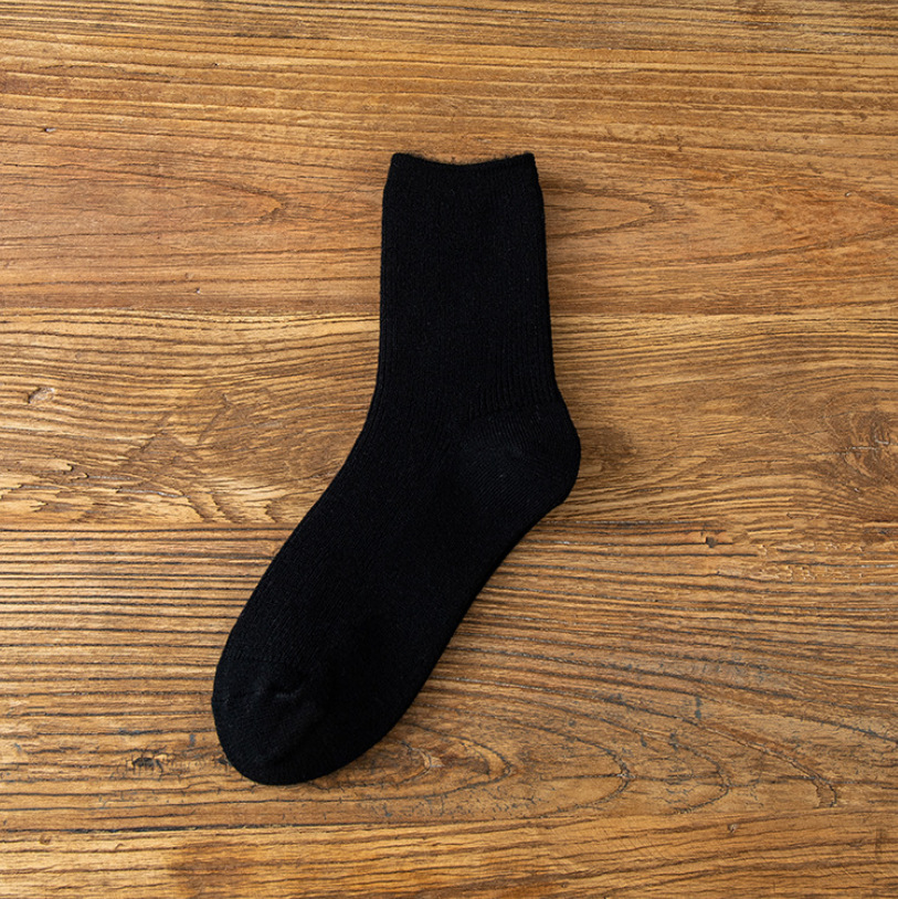 冬季加绒加厚双针保暖羊绒袜子女中筒袜雪地堆堆袜纯色睡眠袜子