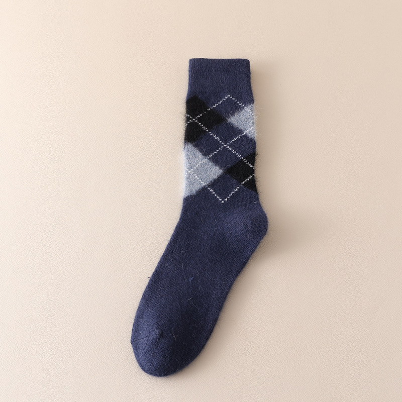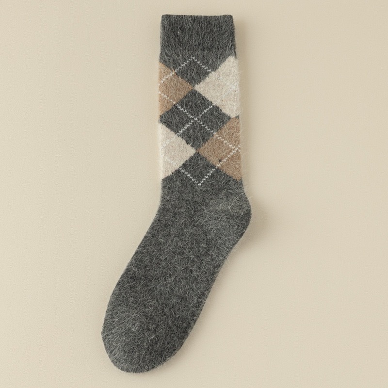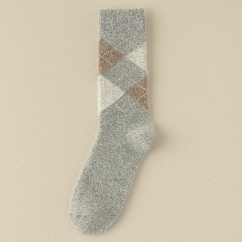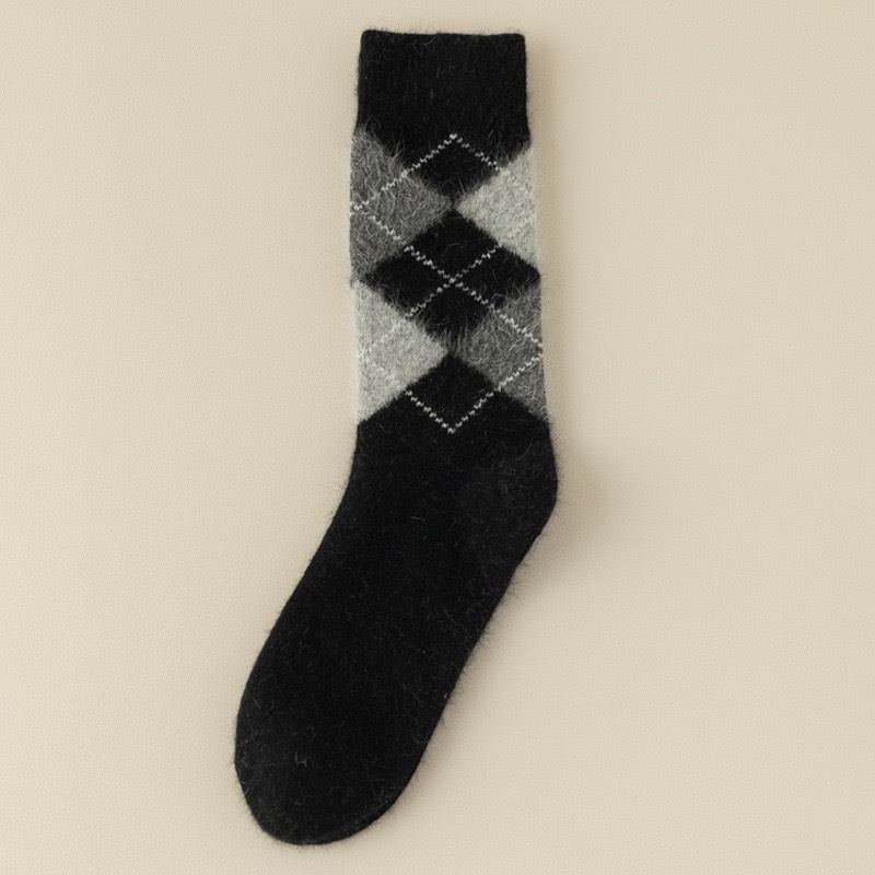 兔毛羊绒加绒复古菱形格子加厚保暖冬季羊毛绒商务加长中筒
