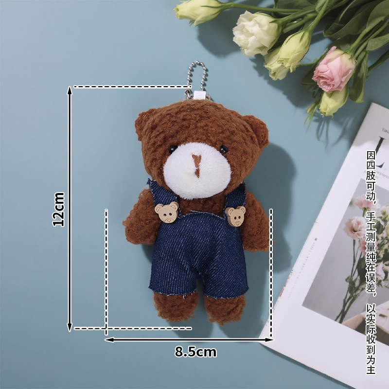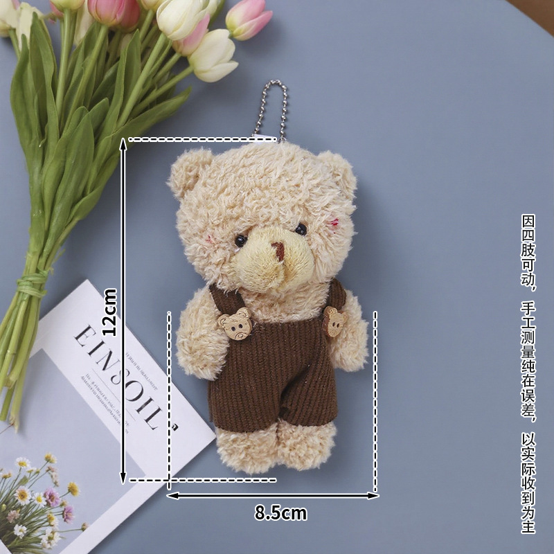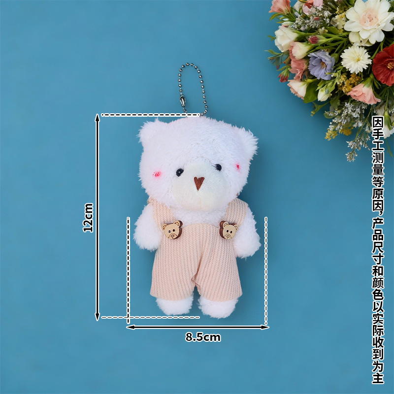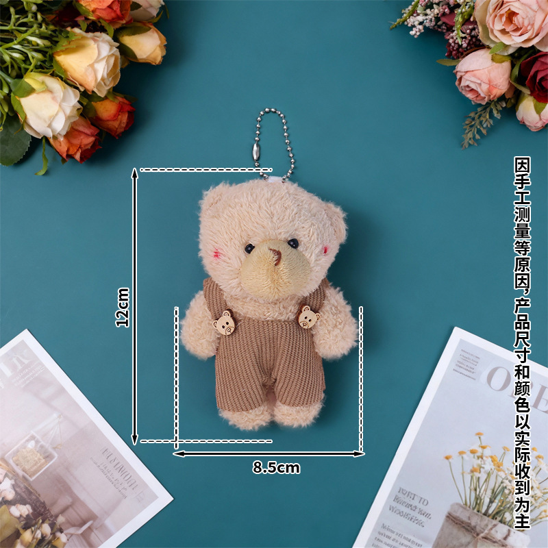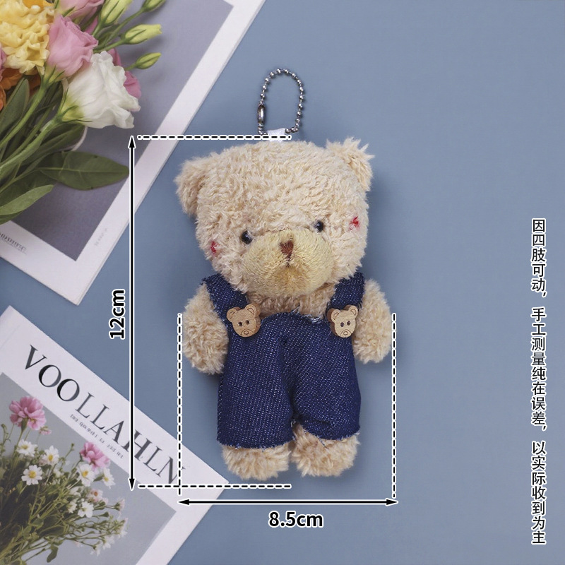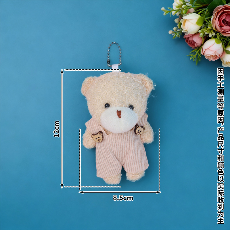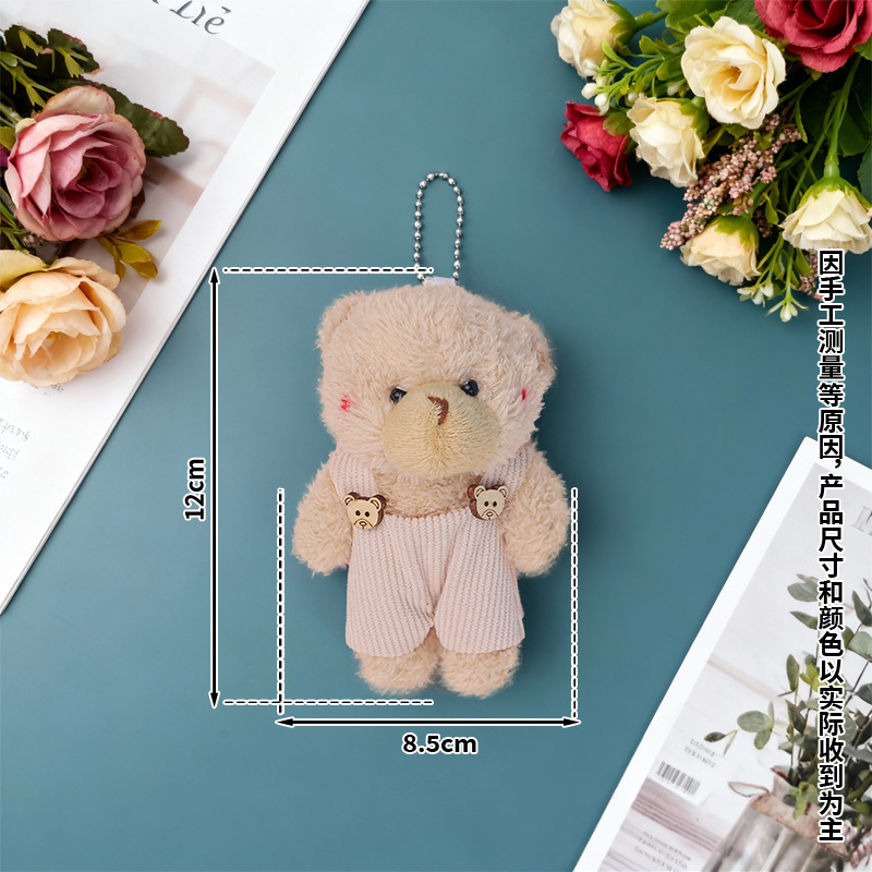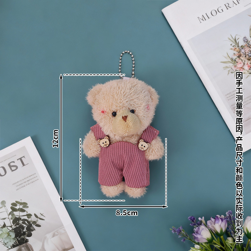 可爱腮红熊背带裤泰迪绒小熊毛绒玩偶包包挂饰挂件钥匙扣娃娃礼物