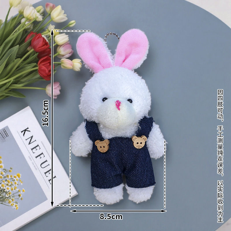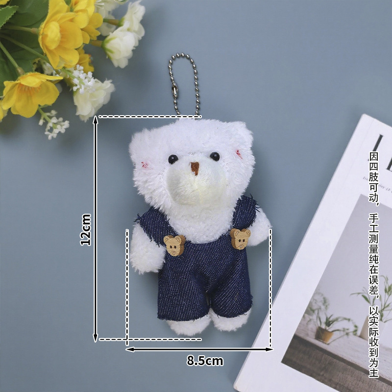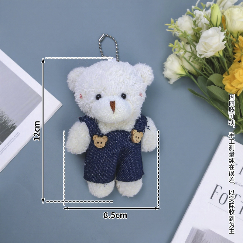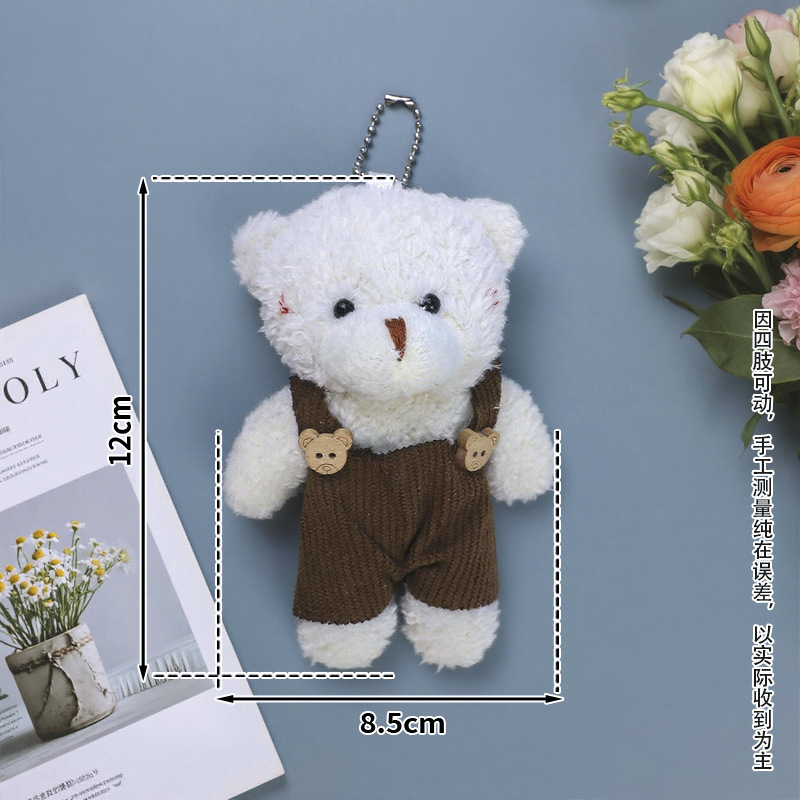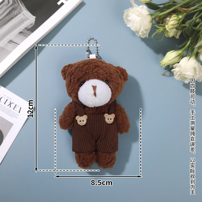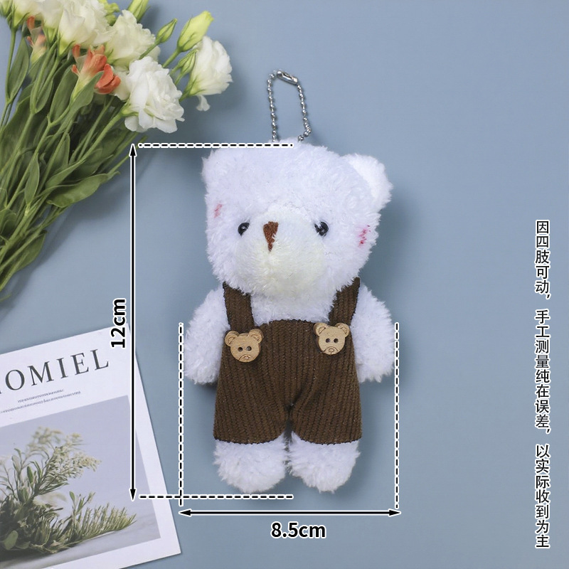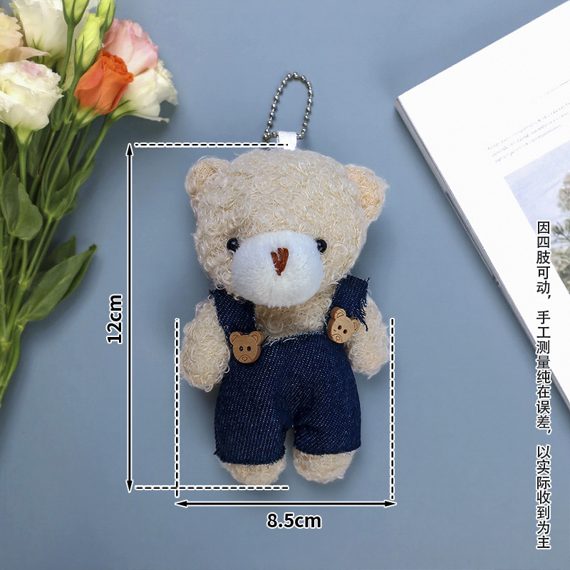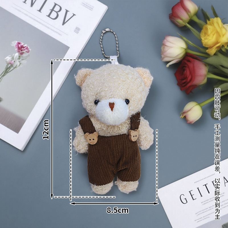 可爱腮红熊背带裤泰迪绒小熊毛绒玩偶包包挂饰挂件钥匙扣娃娃礼物