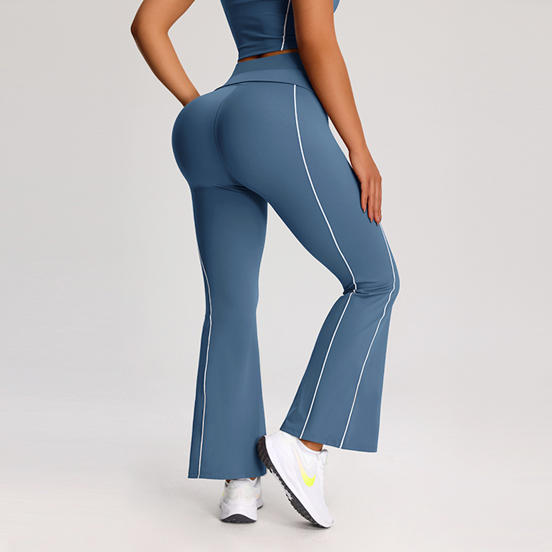 瑜伽裤女夏季运动跑步高弹裸感速干紧身显瘦喇叭裤高腰提臀健身裤