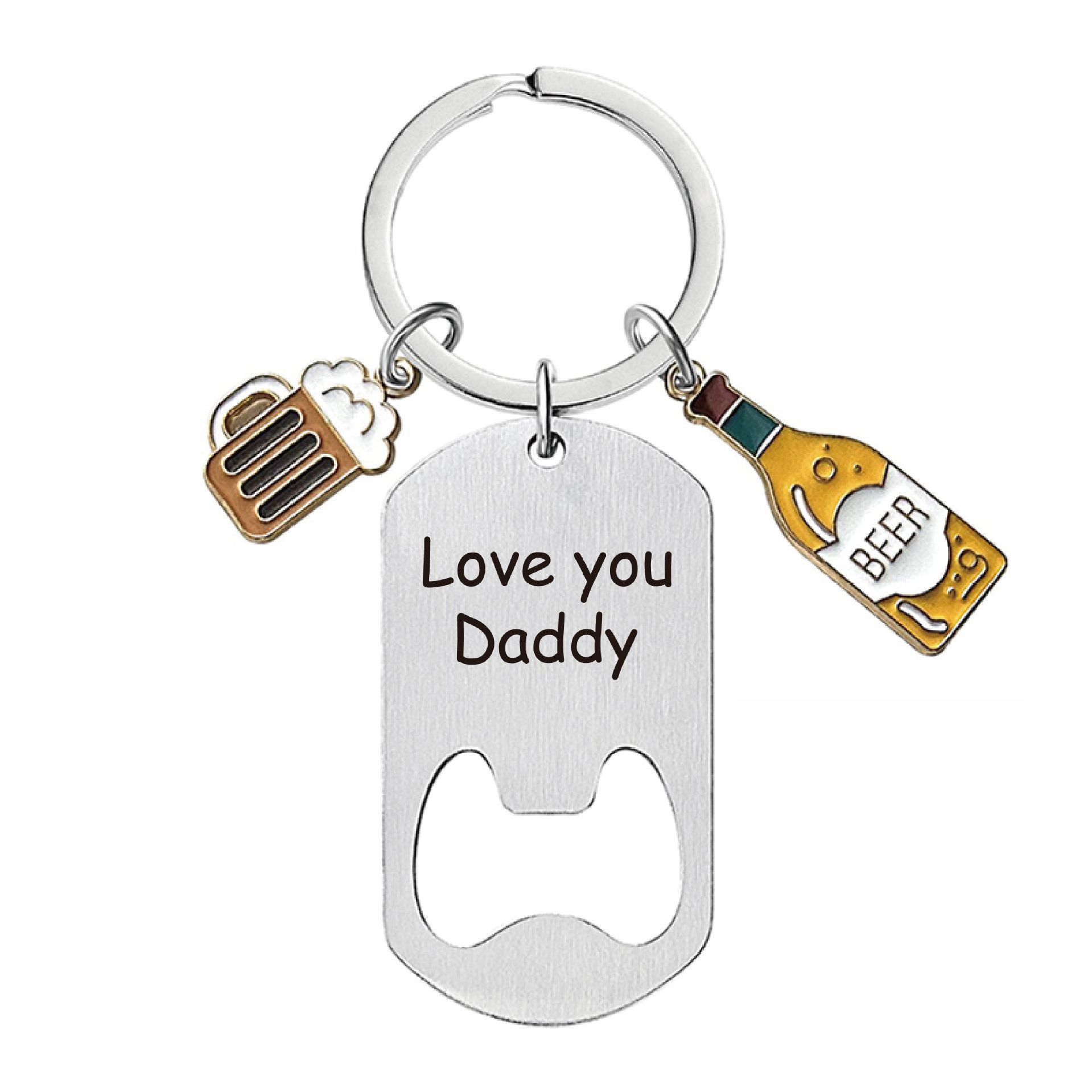 跨境亚马逊热款不锈钢钥匙扣送男士的刻字钥匙扣父亲啤酒开瓶器