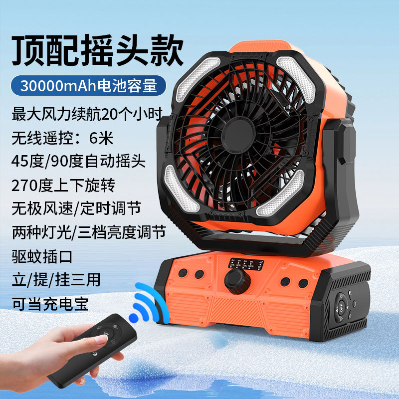跨境户外风扇便携式大容量调速充电露营风扇钓鱼野营帐篷照明AYM