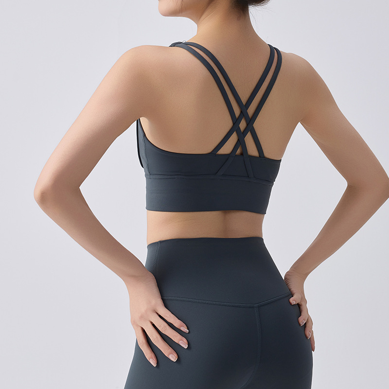 双面磨毛运动内衣交叉美背瑜伽背心聚拢防震健身文胸防震防下垂