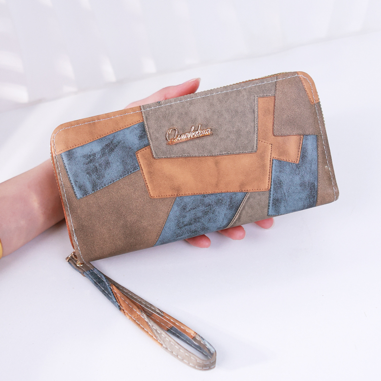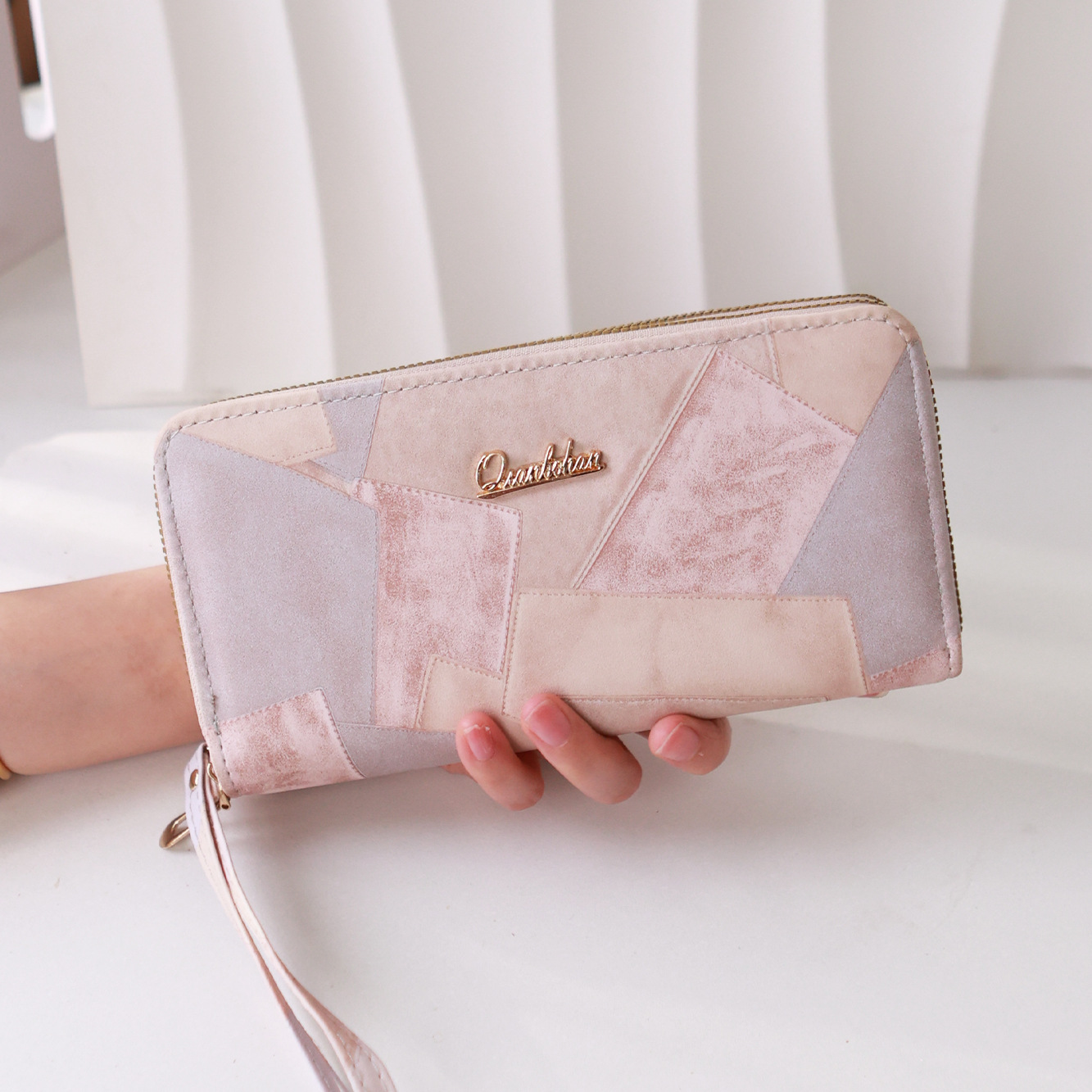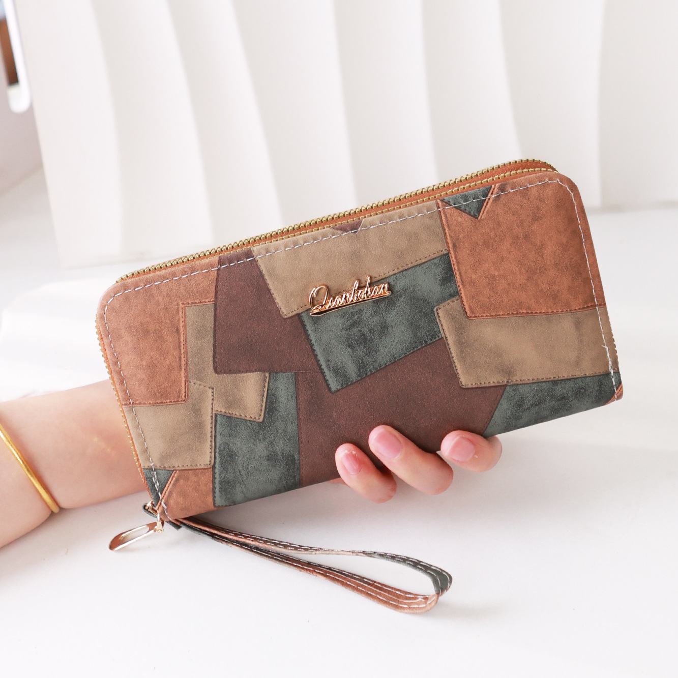 跨境2025新款钱包女皮革拼色双拉链大容量手拿包简约高级感手机包 投诉