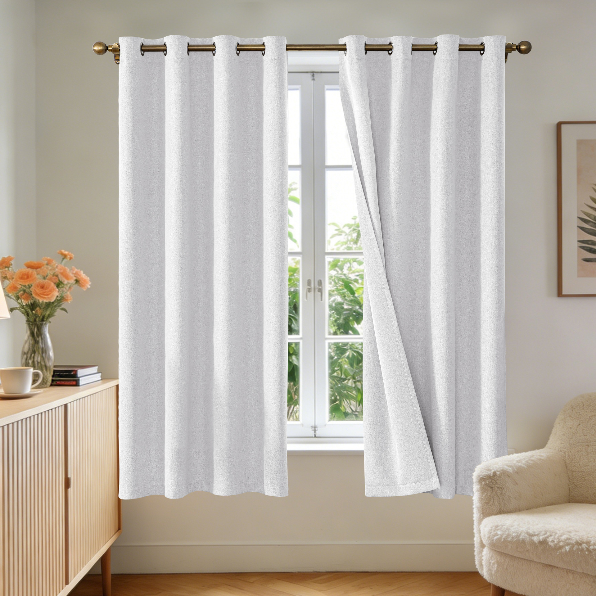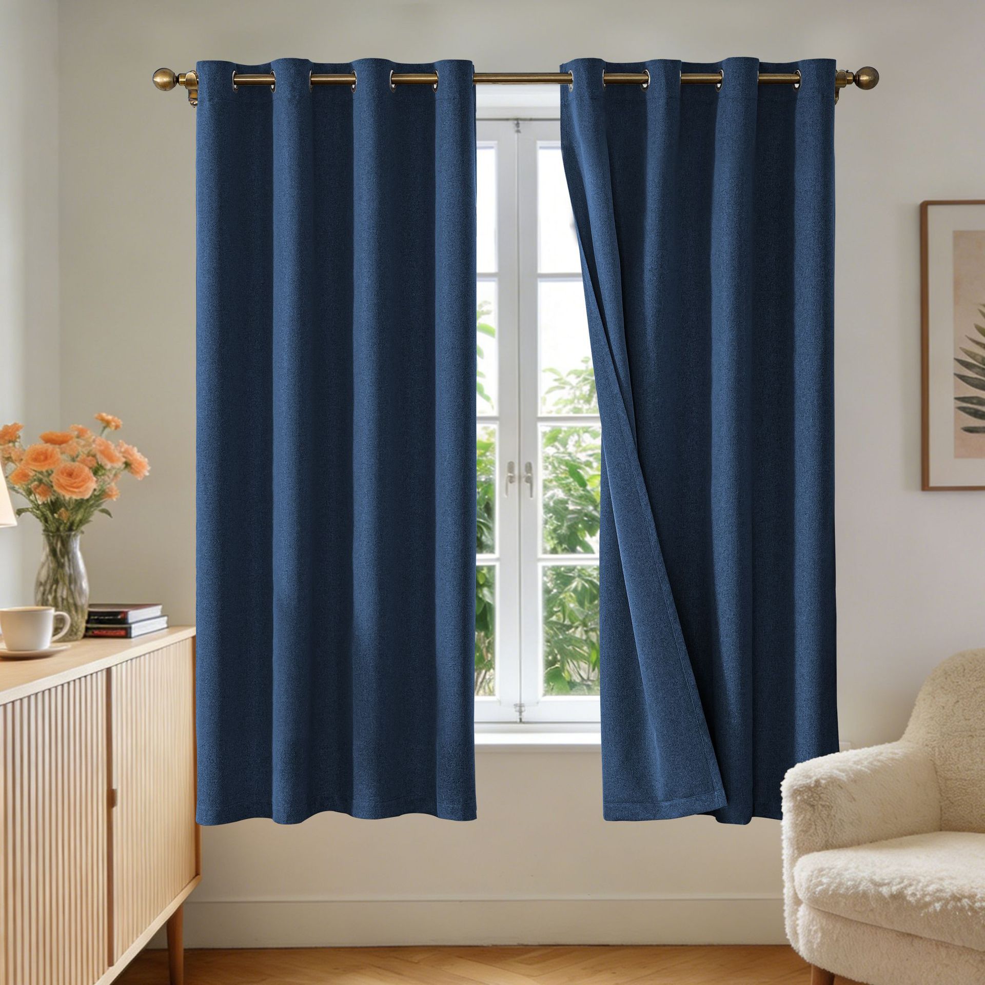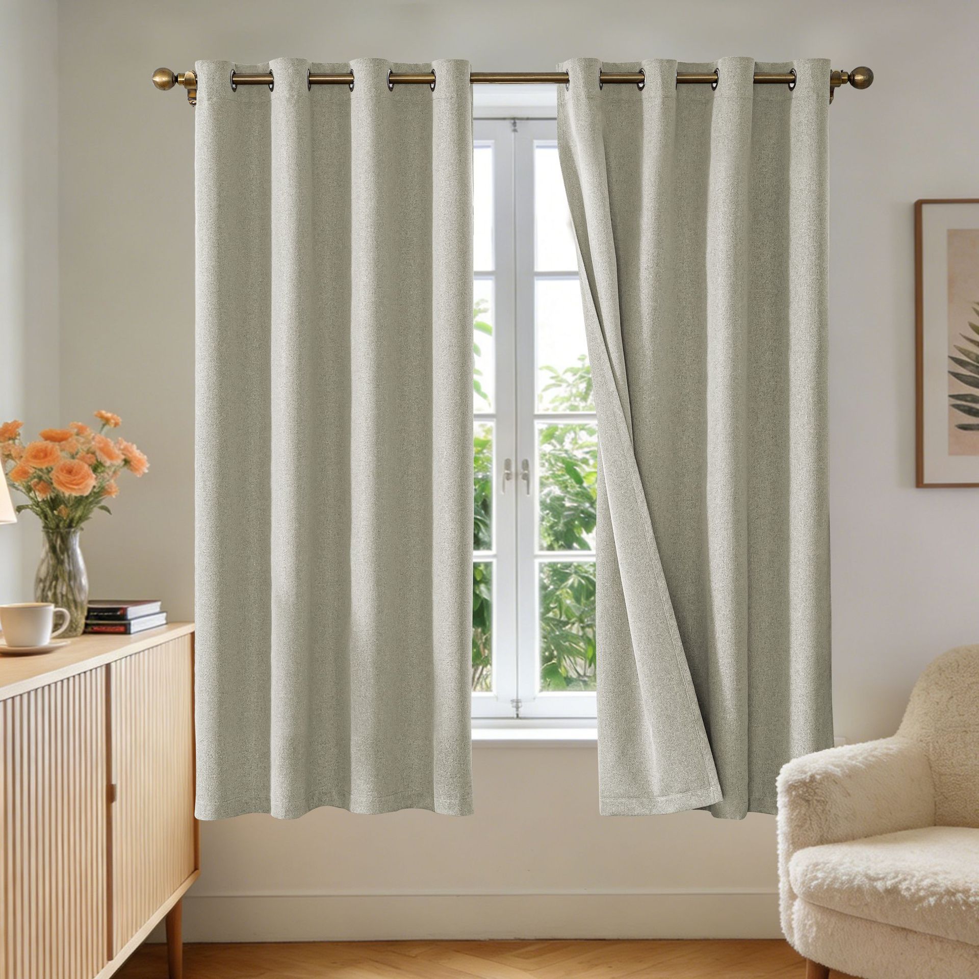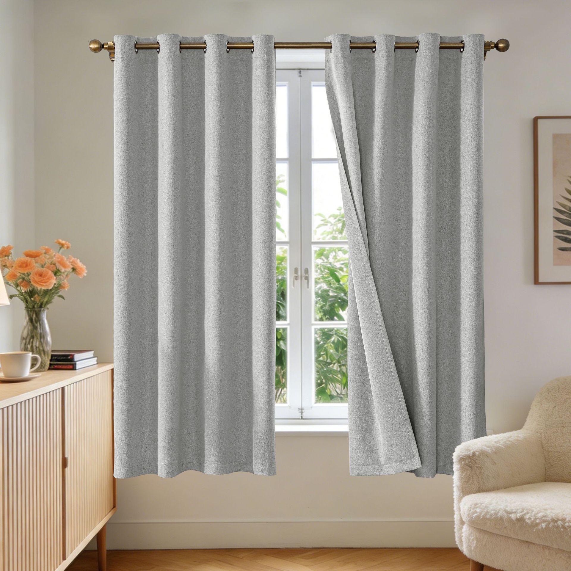 纯色仿麻curtain卧室打环窗帘客厅全遮光亚马逊跨境成品外贸批发