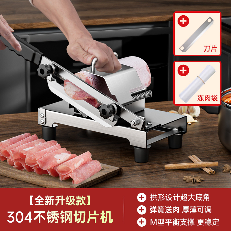 304羊肉卷切片机家用肉片机手动小型商用肥牛肉卷冻肉神器刨肉机