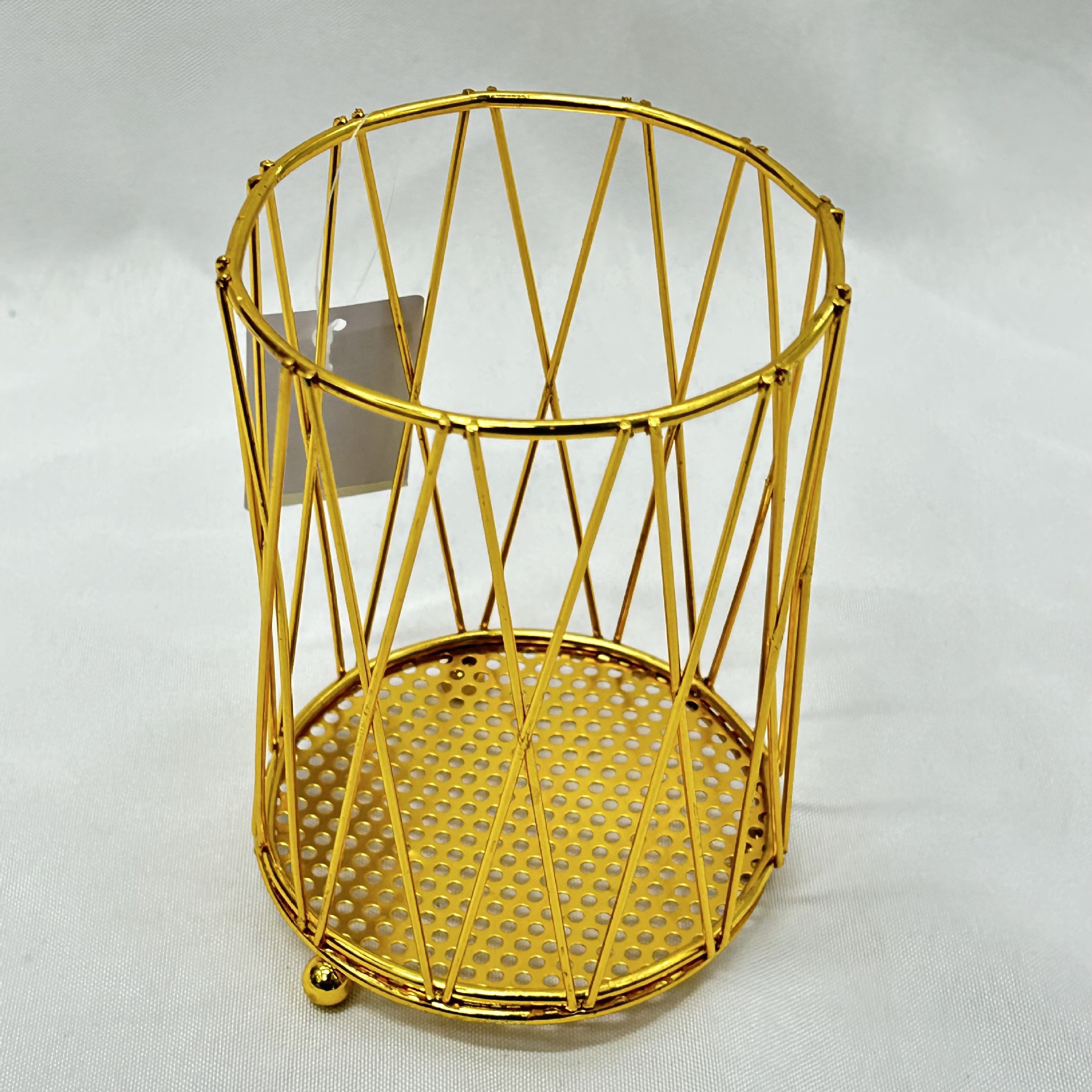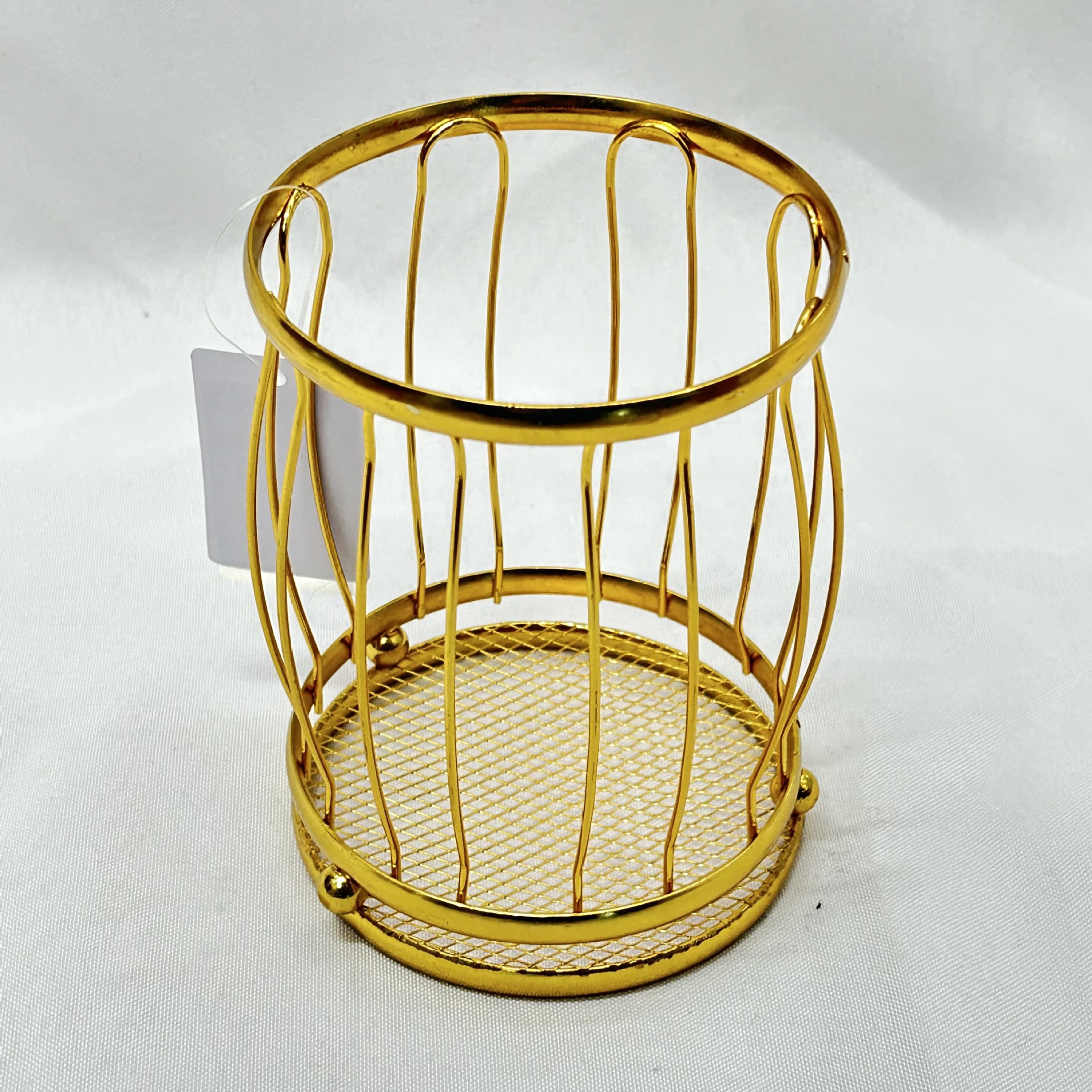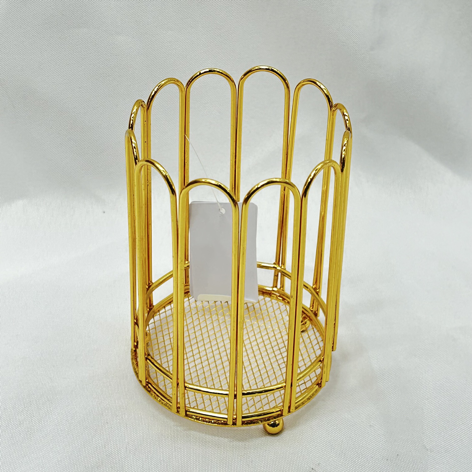 跨境批发简约金色收纳桶 家用筷子笼办公文具桶化妆刷收纳盒