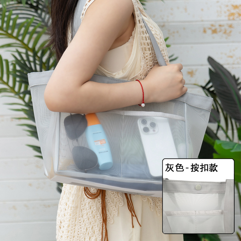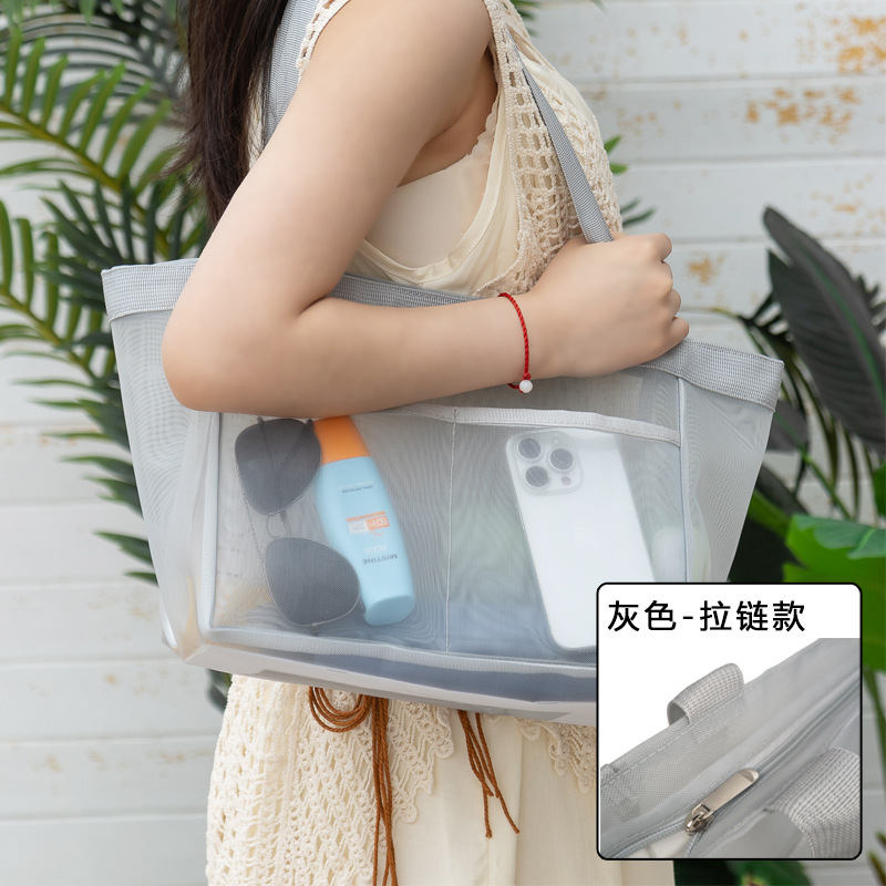 大容量尼龙网纱购物袋沙滩包旅行收纳包便携户外单肩包手提包斜挎