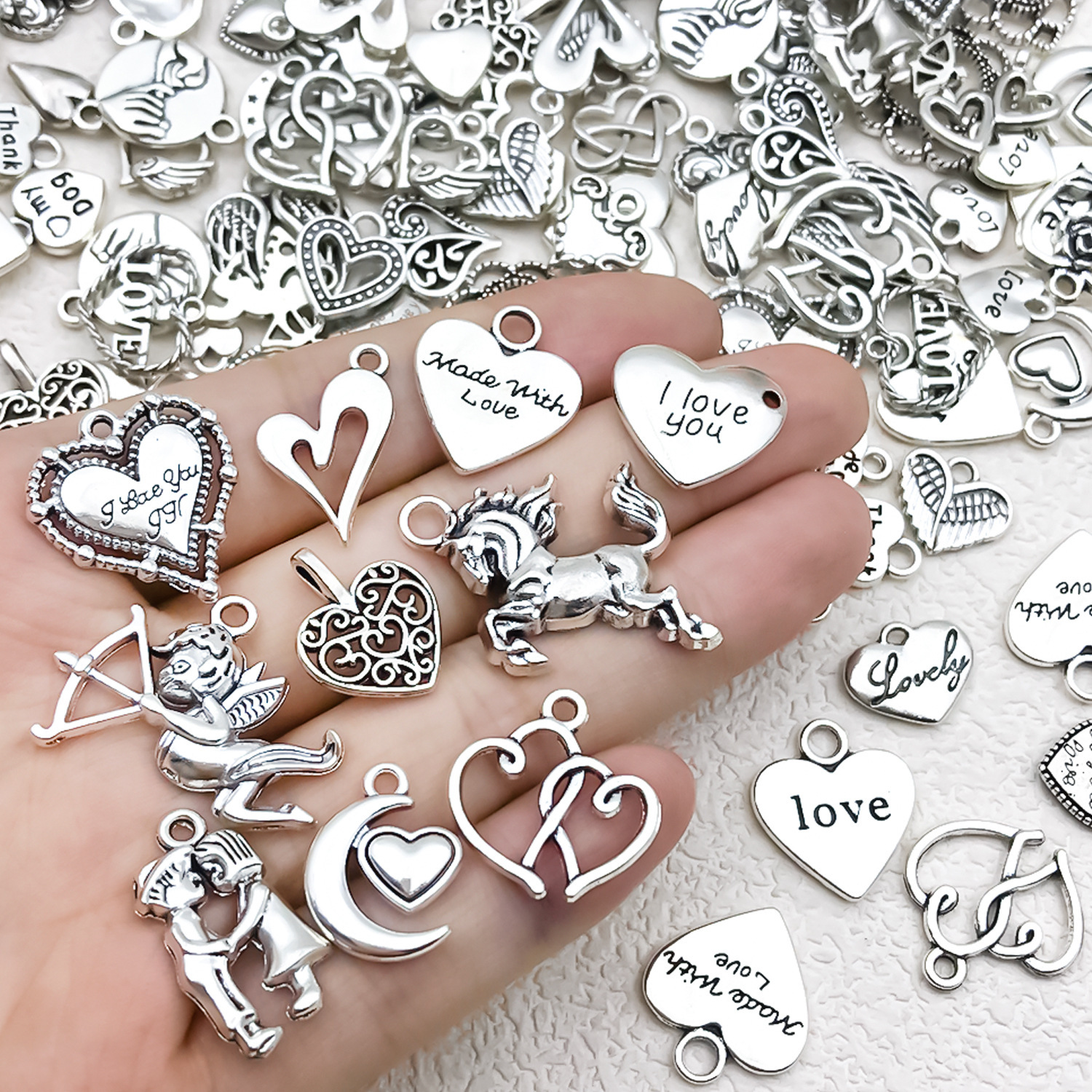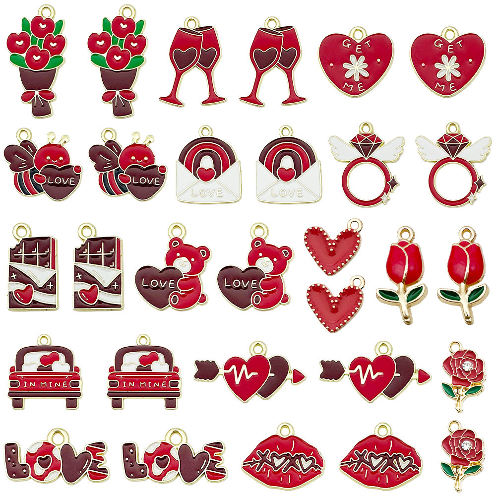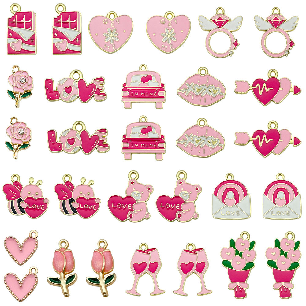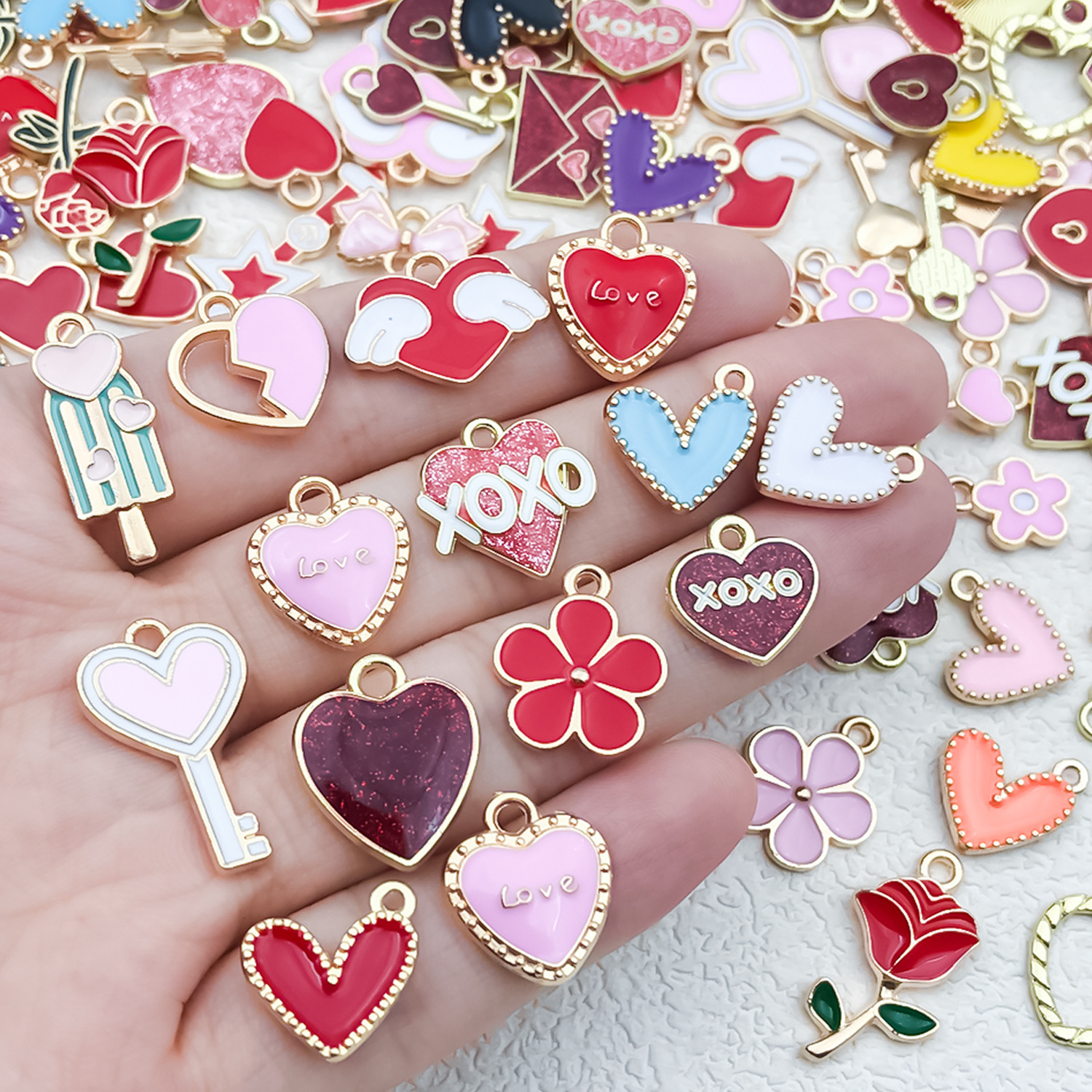 混50个红粉爱心桃心饰品配件 diy手链钥匙扣项链吊坠合金滴油挂件