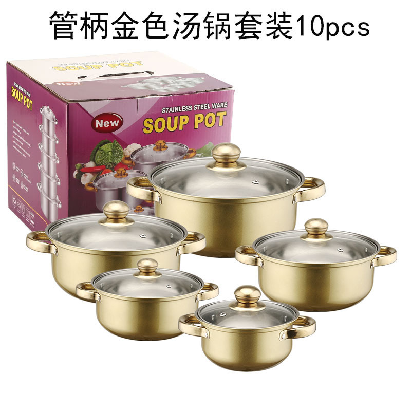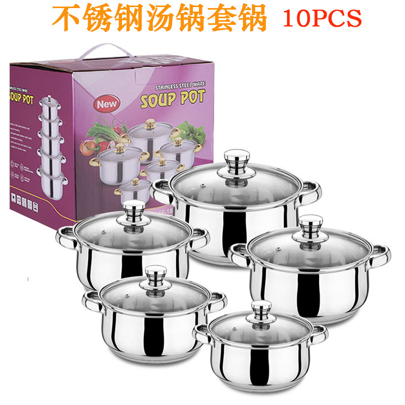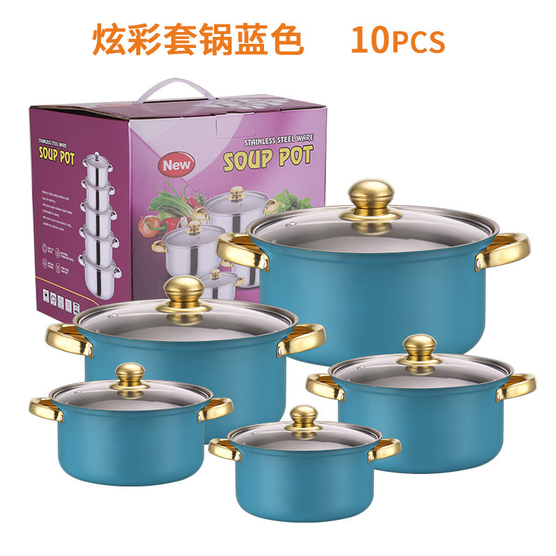 不锈钢炫彩10件套套锅汤锅火锅不锈钢汤锅蒸锅礼品厨具跨境专供