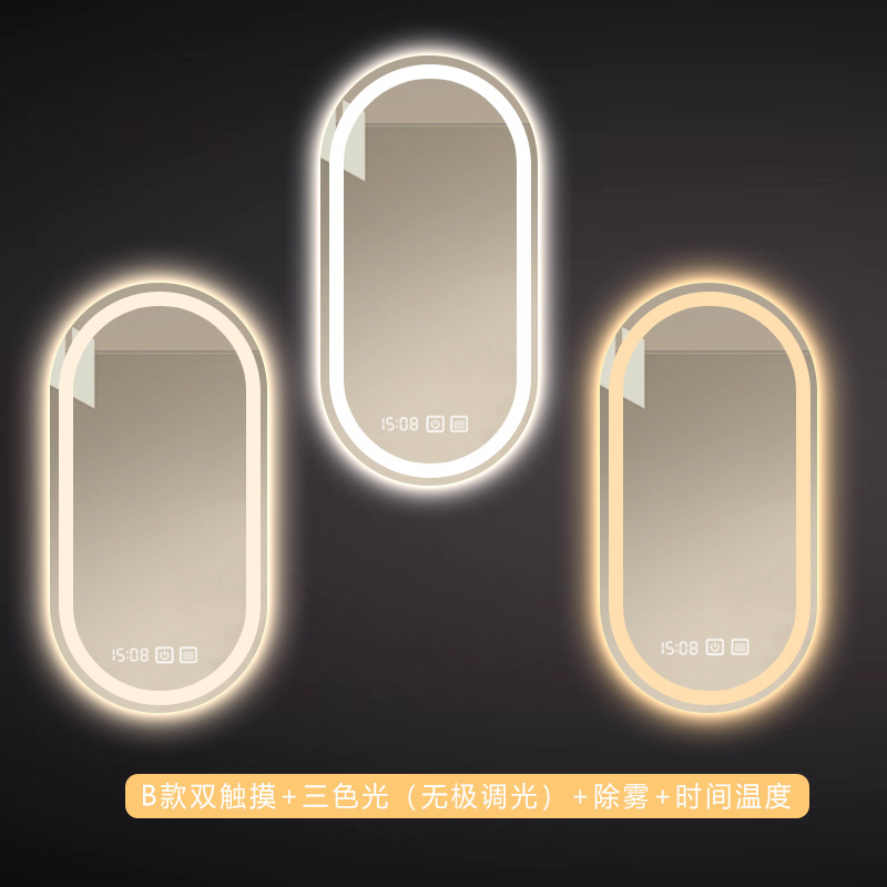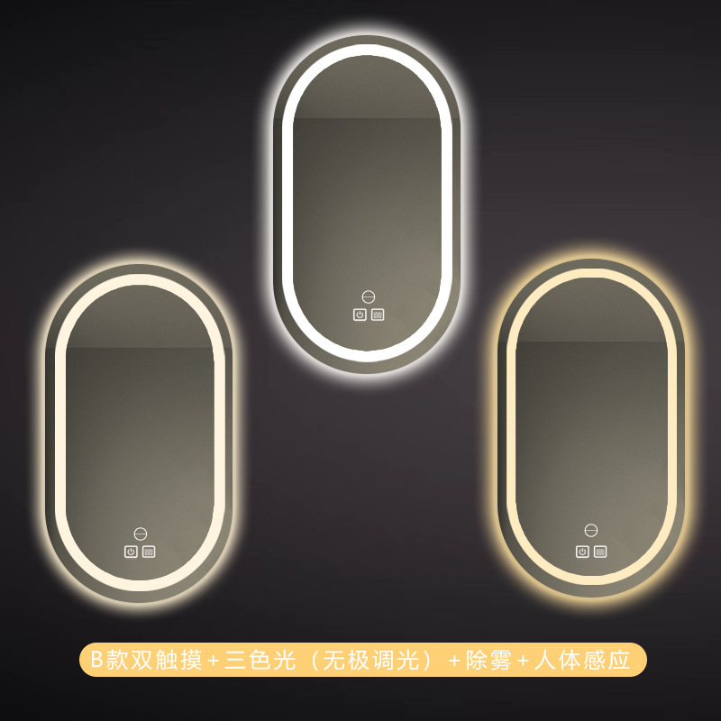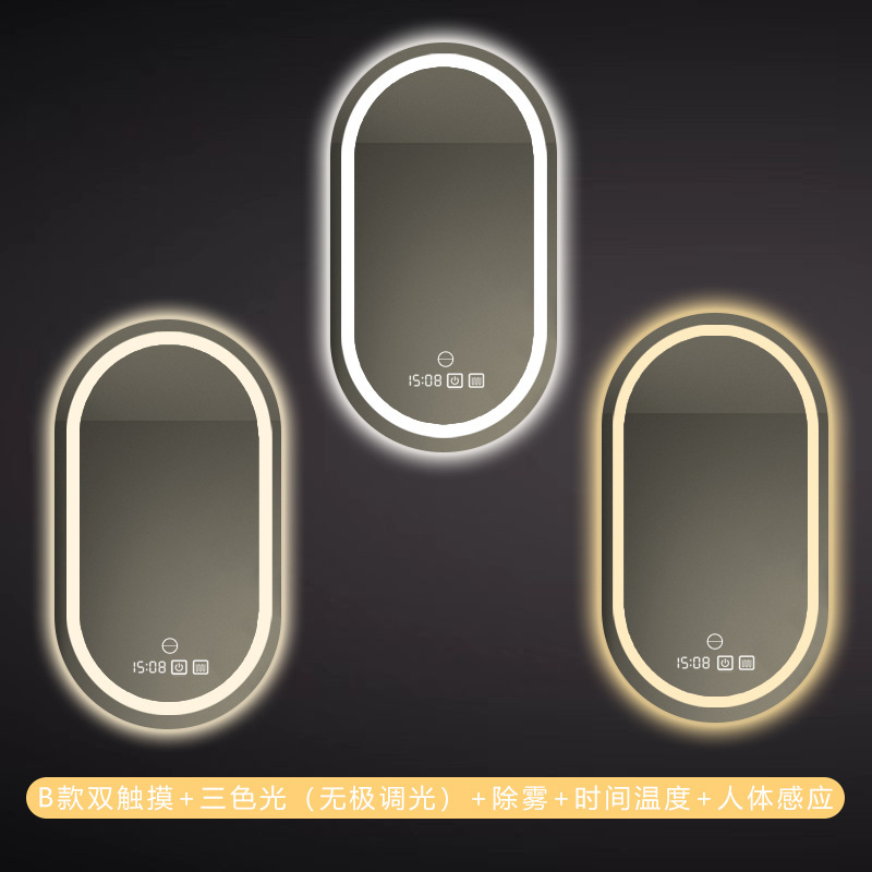 【人体感应】B款+时间温度+双触控+三色光+除雾 (无极调光)
