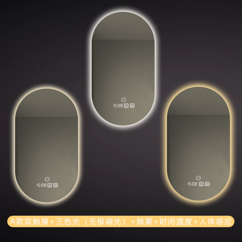 【人体感应】A款+时间温度+双触控+三色光+除雾 (无极调光)