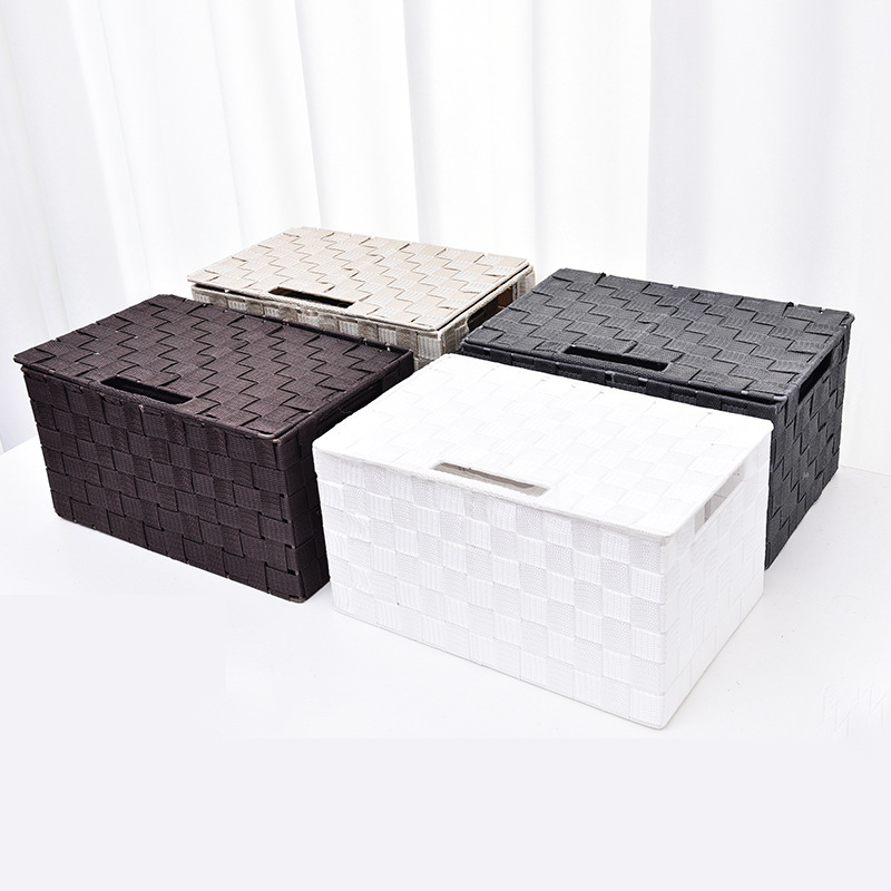 简约收纳箱有盖编织收纳盒储物箱收纳筐整理箱内衣零食收纳杂物筐