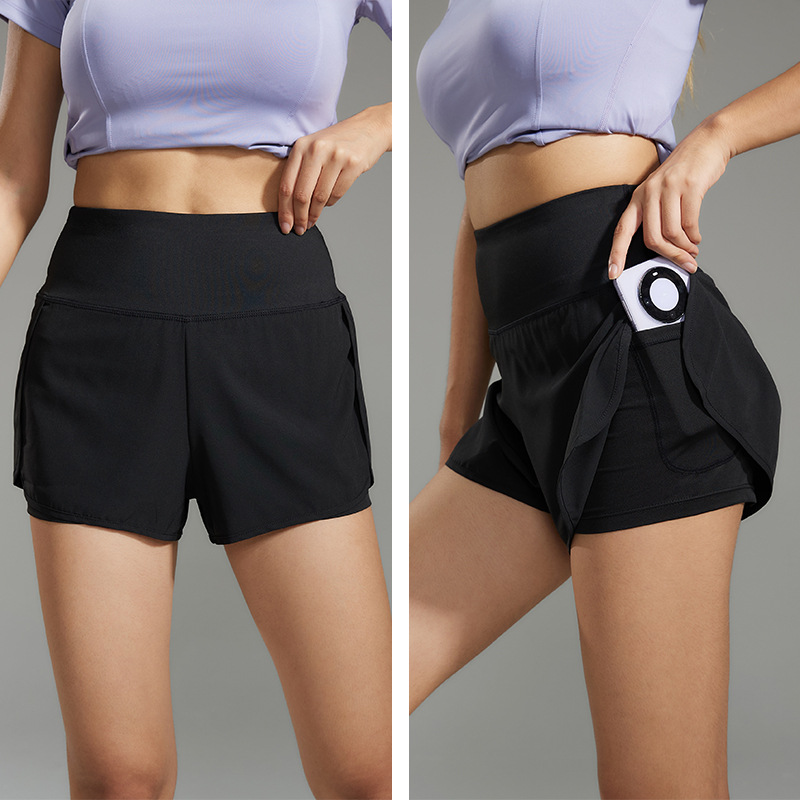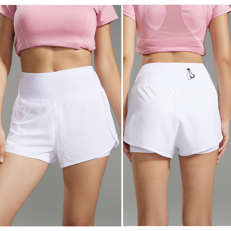 热卖健身瑜伽运动宽松双层防走光速干短裤 后侧拉链口袋独特设计