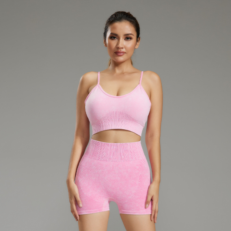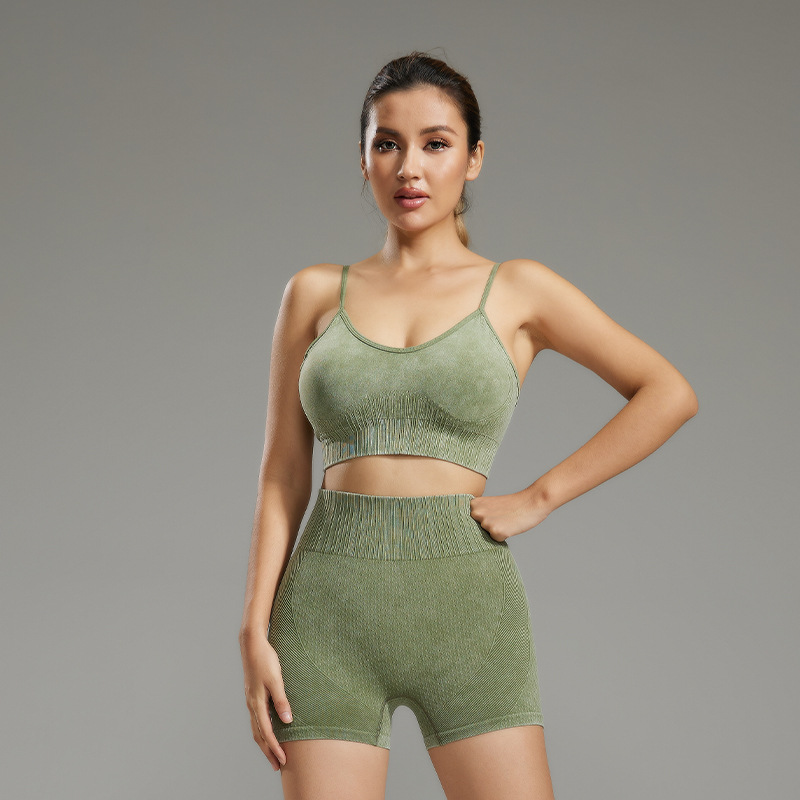 透气运动文胸瑜伽跑步内衣女防震健身文胸裸感带胸垫透气背心套装