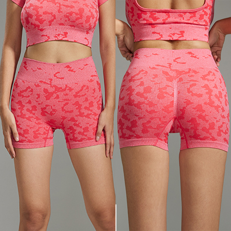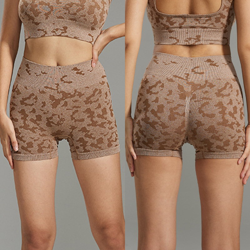 跨境热卖大码女士迷彩收腹瑜伽裤紧身裤 跑步运动蜜桃臀健身短裤