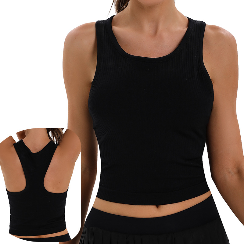 跨境lulu瑜伽背心女带胸垫外穿美背背心无袖跑步运动健身服