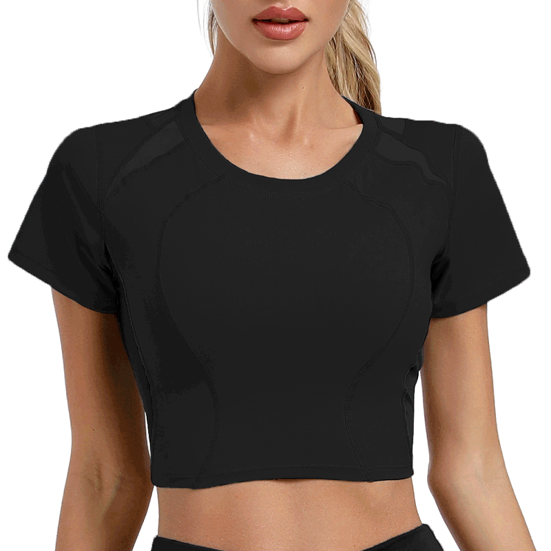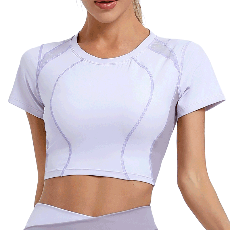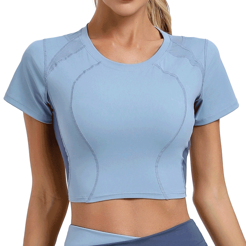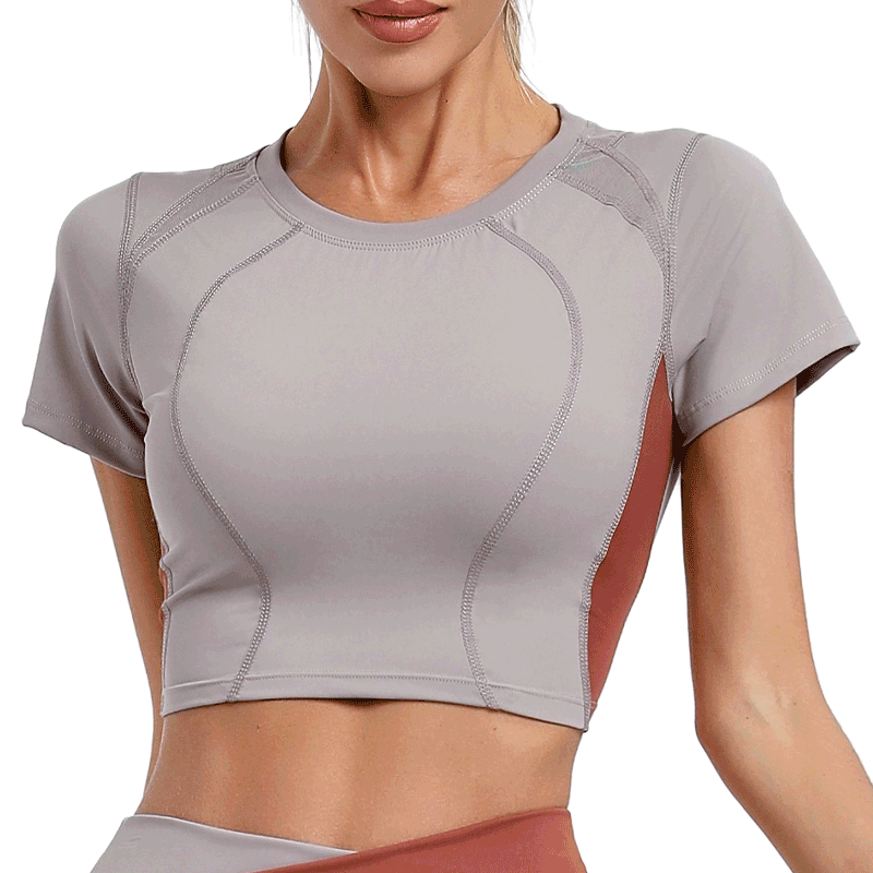 撞色交叉款 瑜伽服高腰瑜伽运动健身服修身高弹提臀瑜伽 短袖上衣