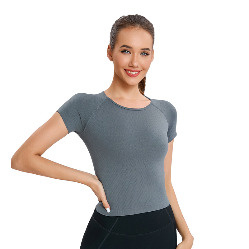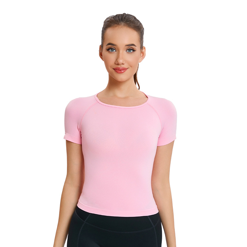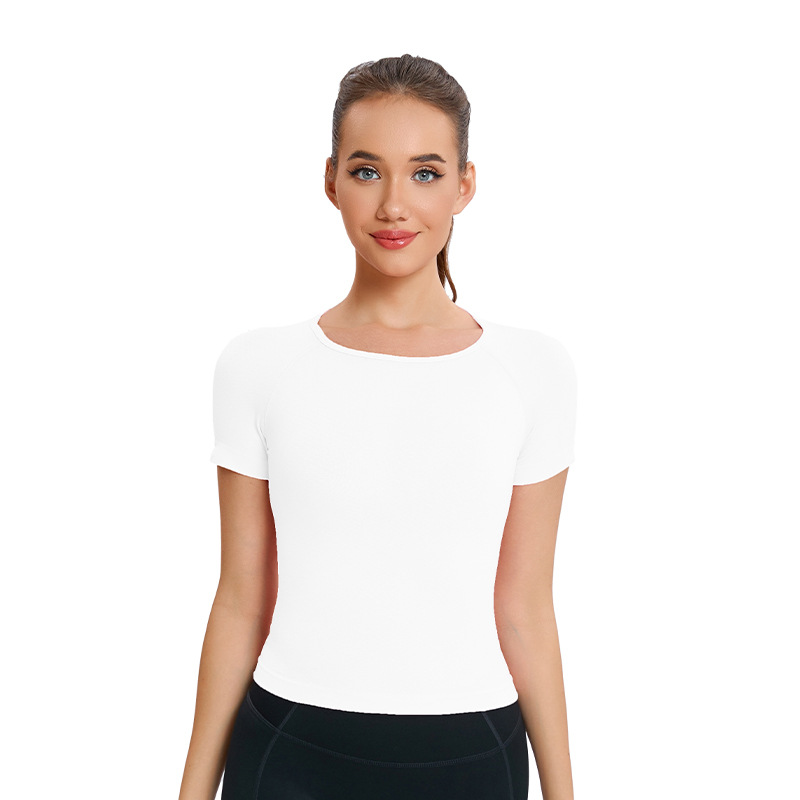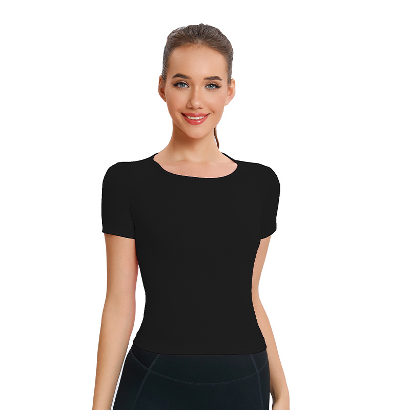 新款热卖2024跨境紧身运动短袖跑步训练速干衣短袖薄裸感瑜伽服女
