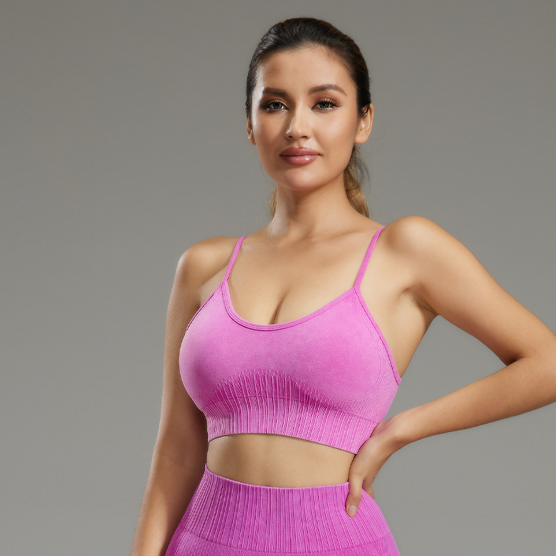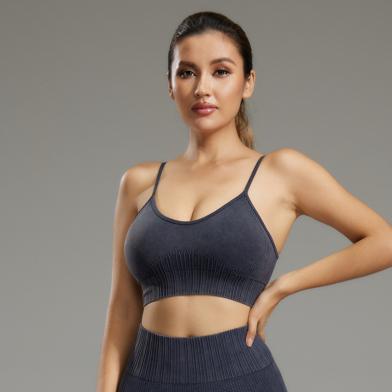 磨砂透气运动文胸瑜伽跑步内衣女防震健身文胸裸感带胸垫透气背心