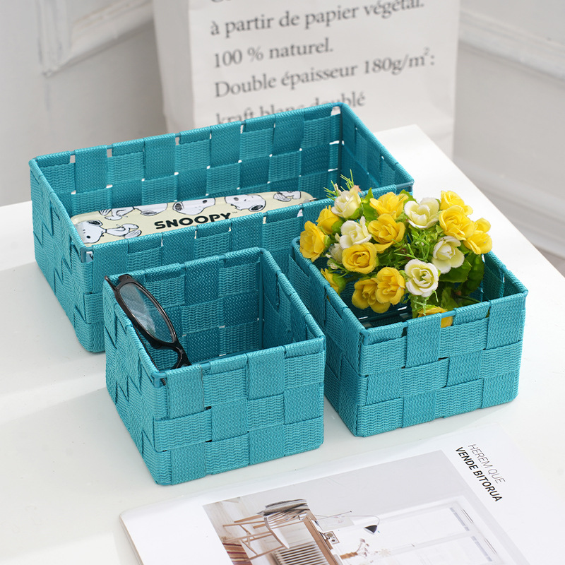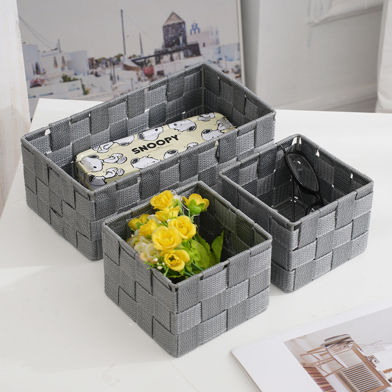 小号丙纶丝编织收纳盒灰色收纳框桌面杂物收纳篮化妆品手编收纳篮