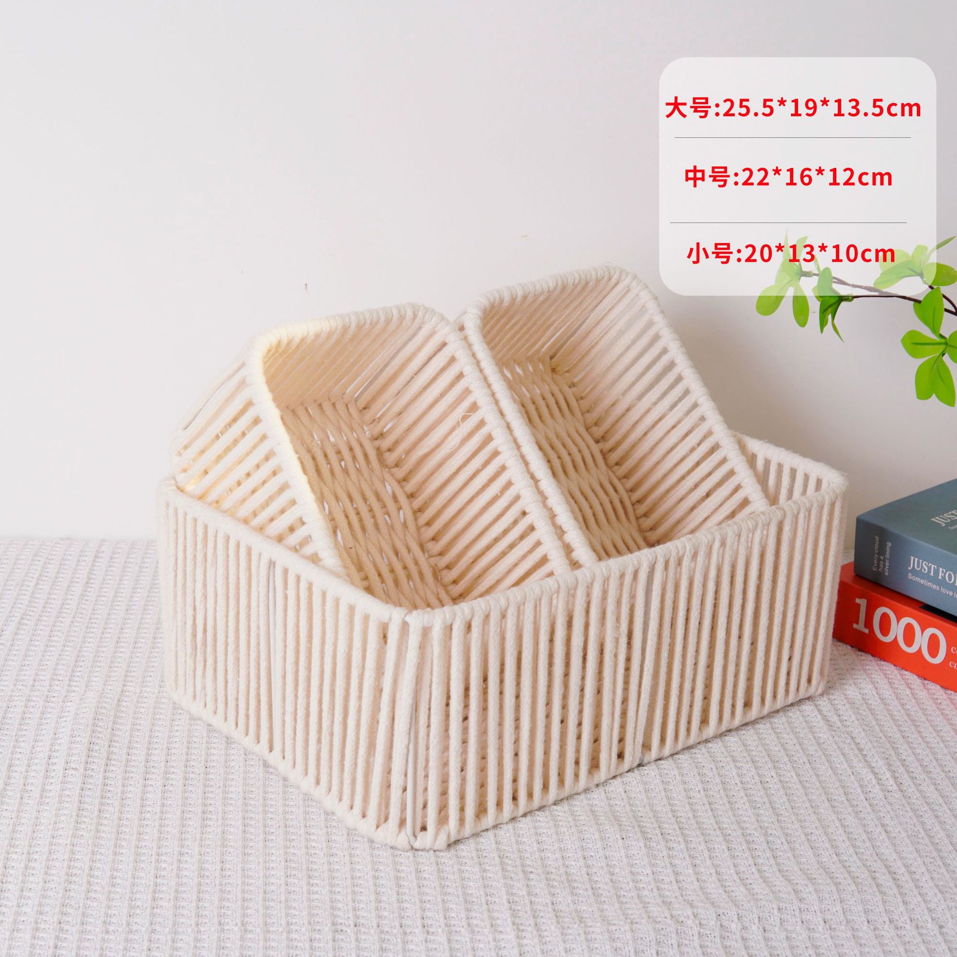 棉绳铁架收纳筐桌面手工编织杂物篮零食水果日式棉绳编织置物篮