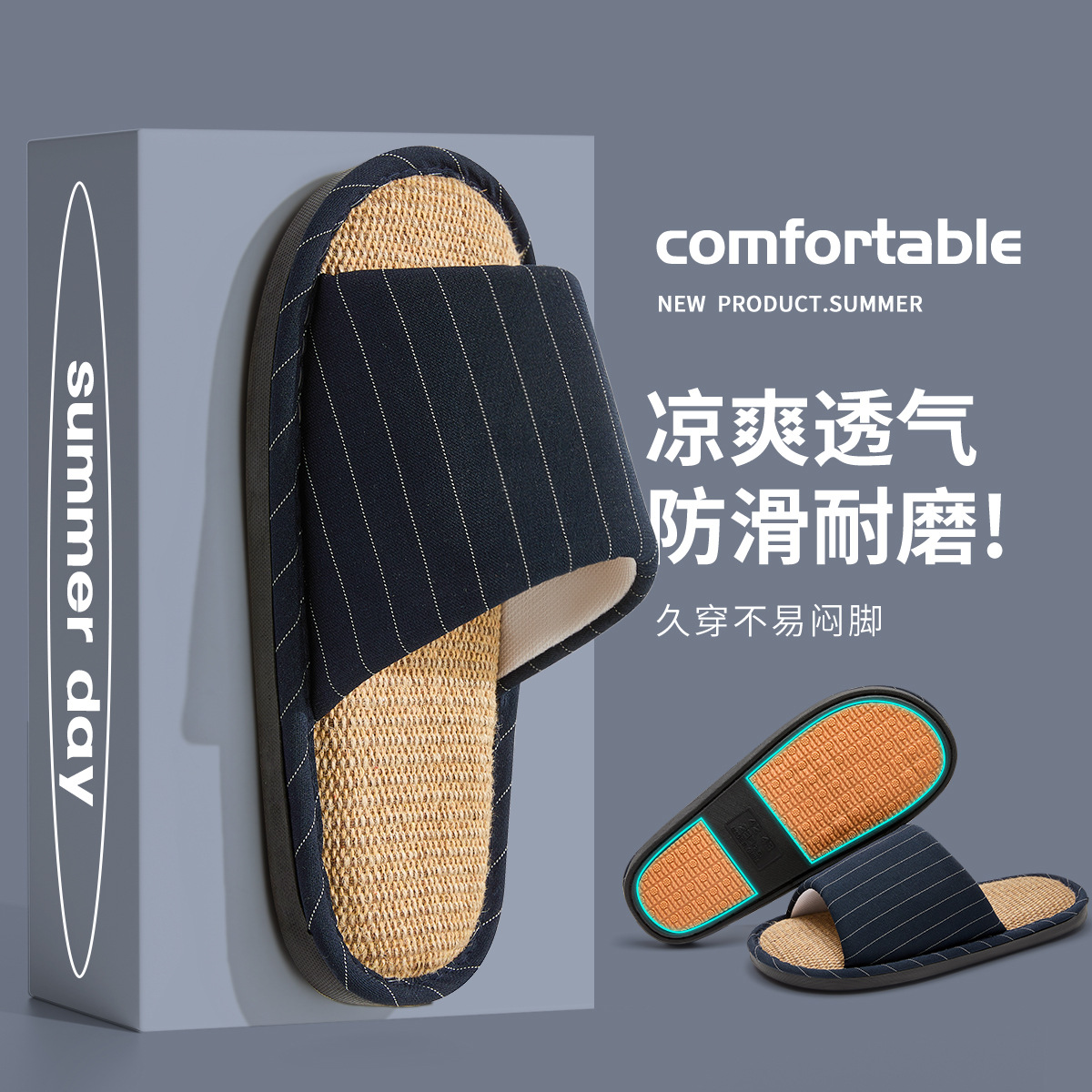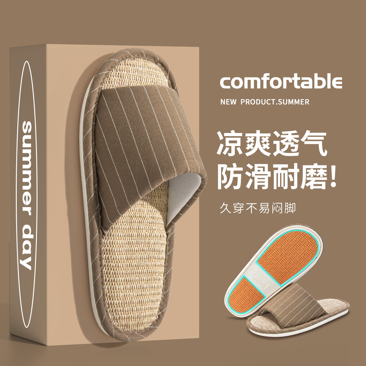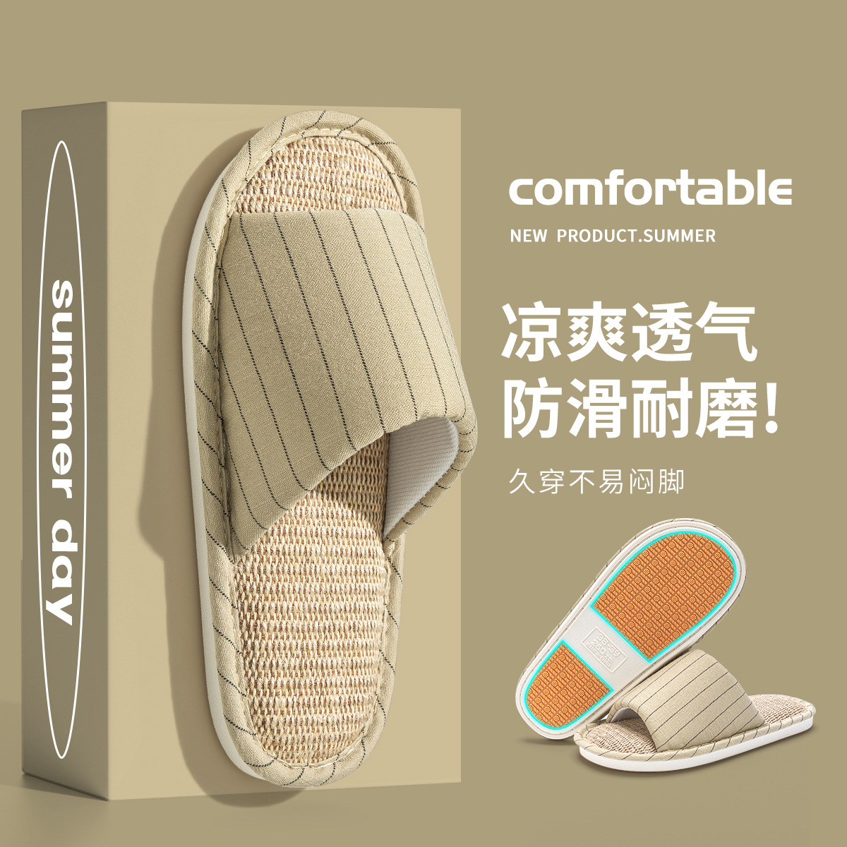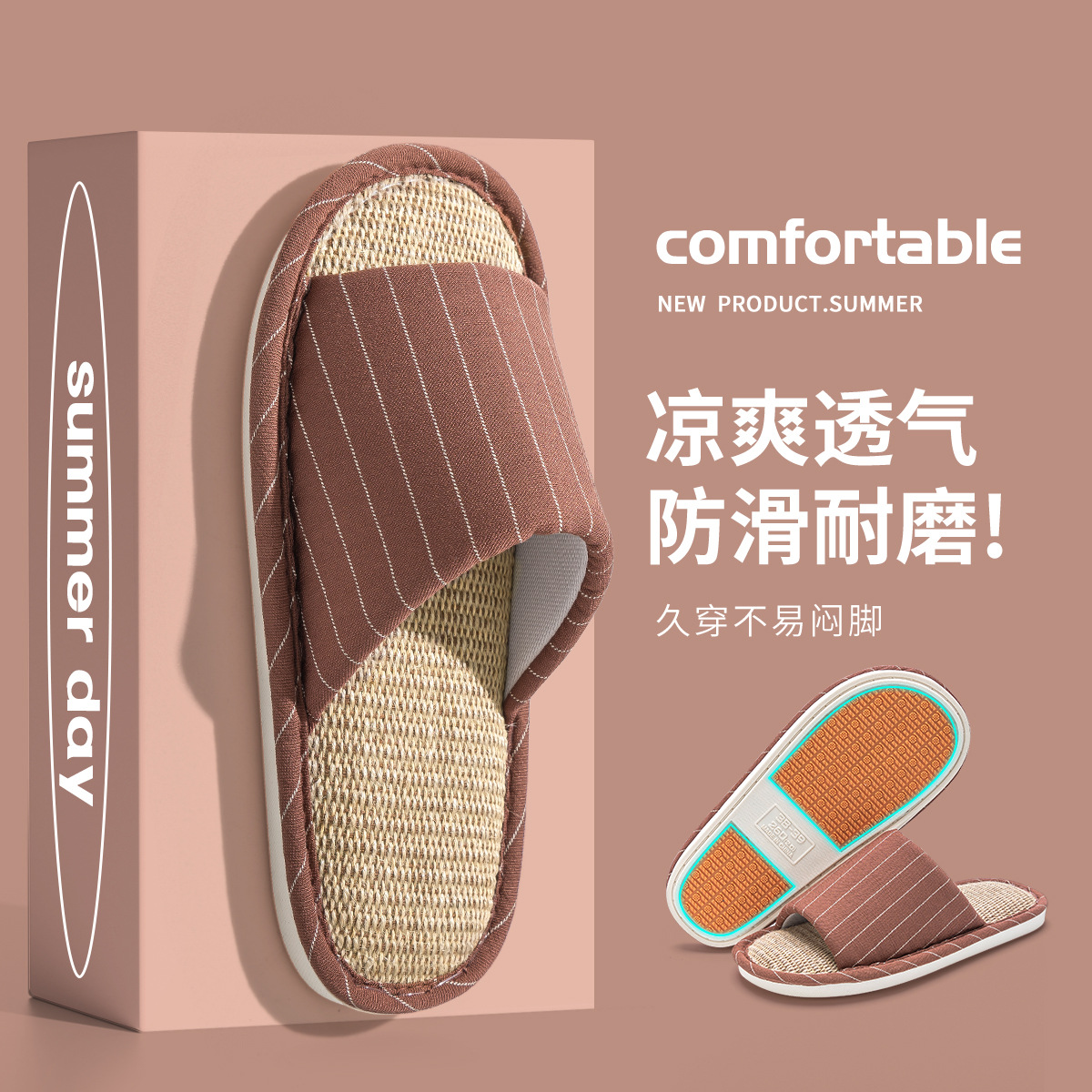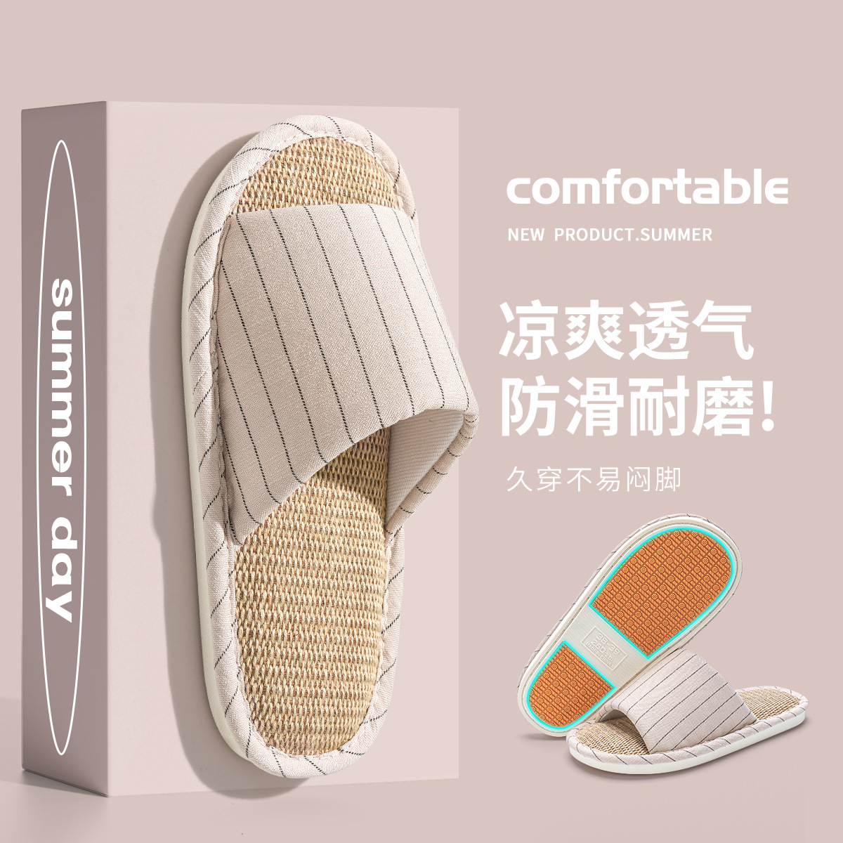 亚麻拖鞋女居家居室内春秋家用情侣四季开口拖静音防滑棉麻拖鞋男