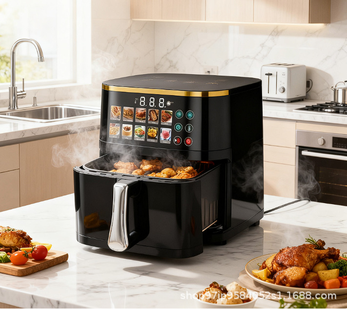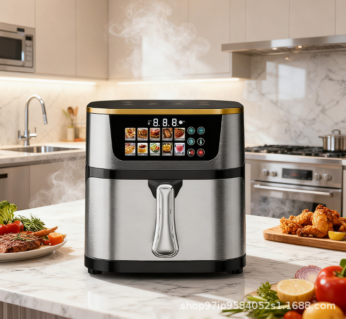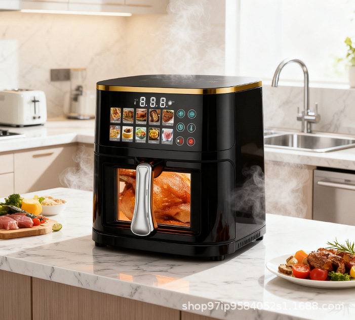 跨境外贸airfryer不锈钢可视空气炸锅触摸智能家用电烤箱大容量