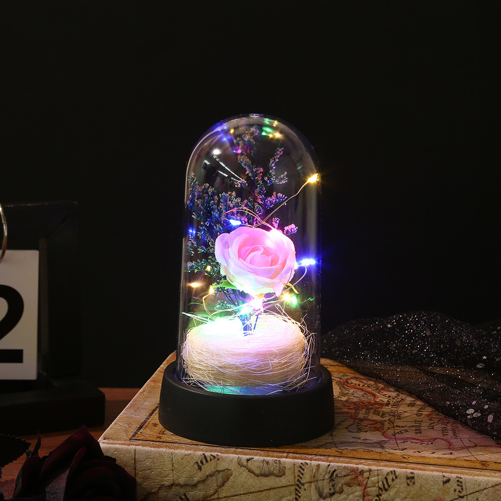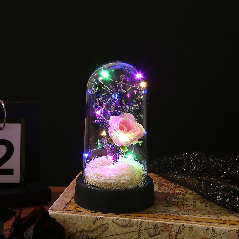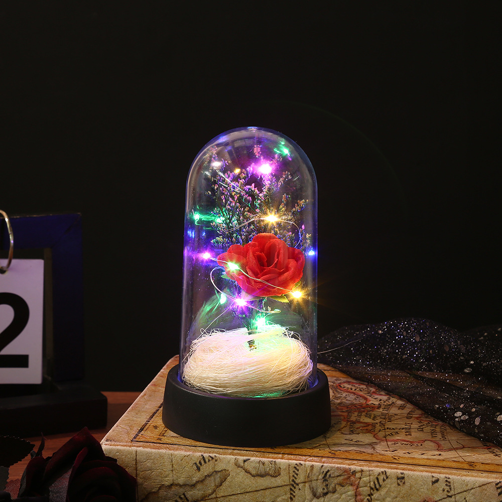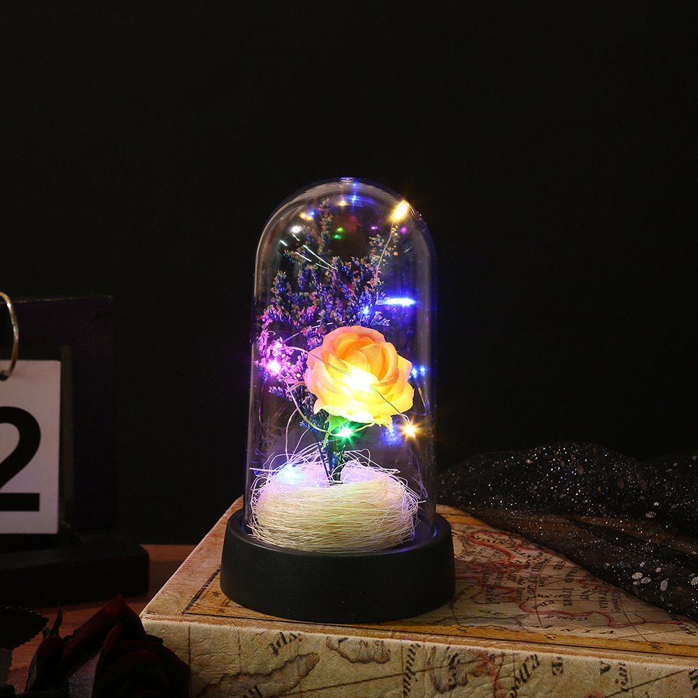 带灯玻璃罩永生花 满天星情人节送女友礼物 创意亚克力桌面摆件