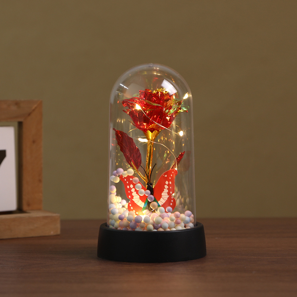 跨境金箔花玻璃罩桌面摆件 蝴蝶彩灯配饰工艺品 家居精美摆台批发