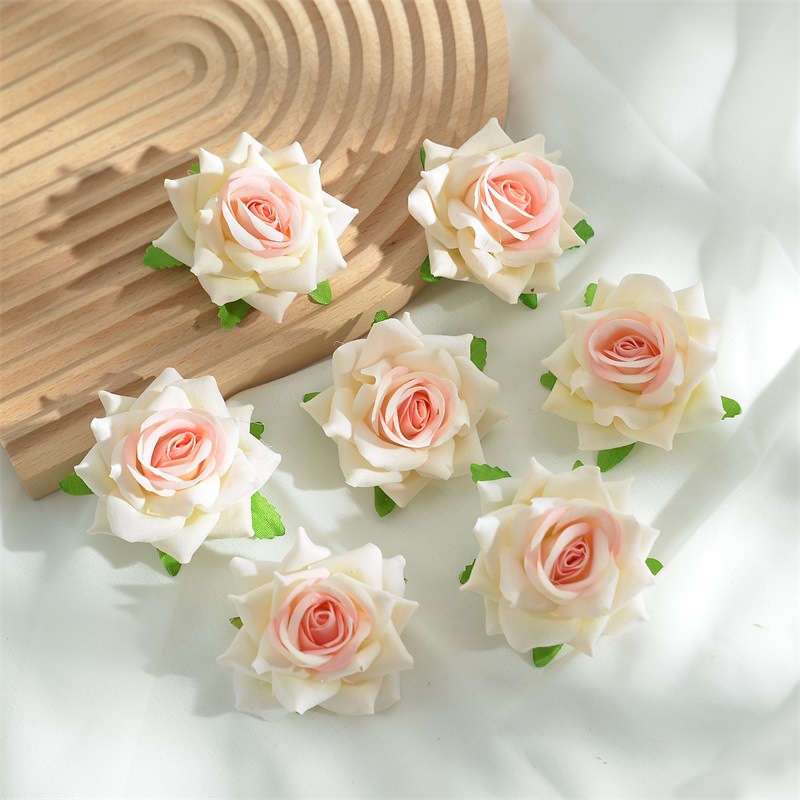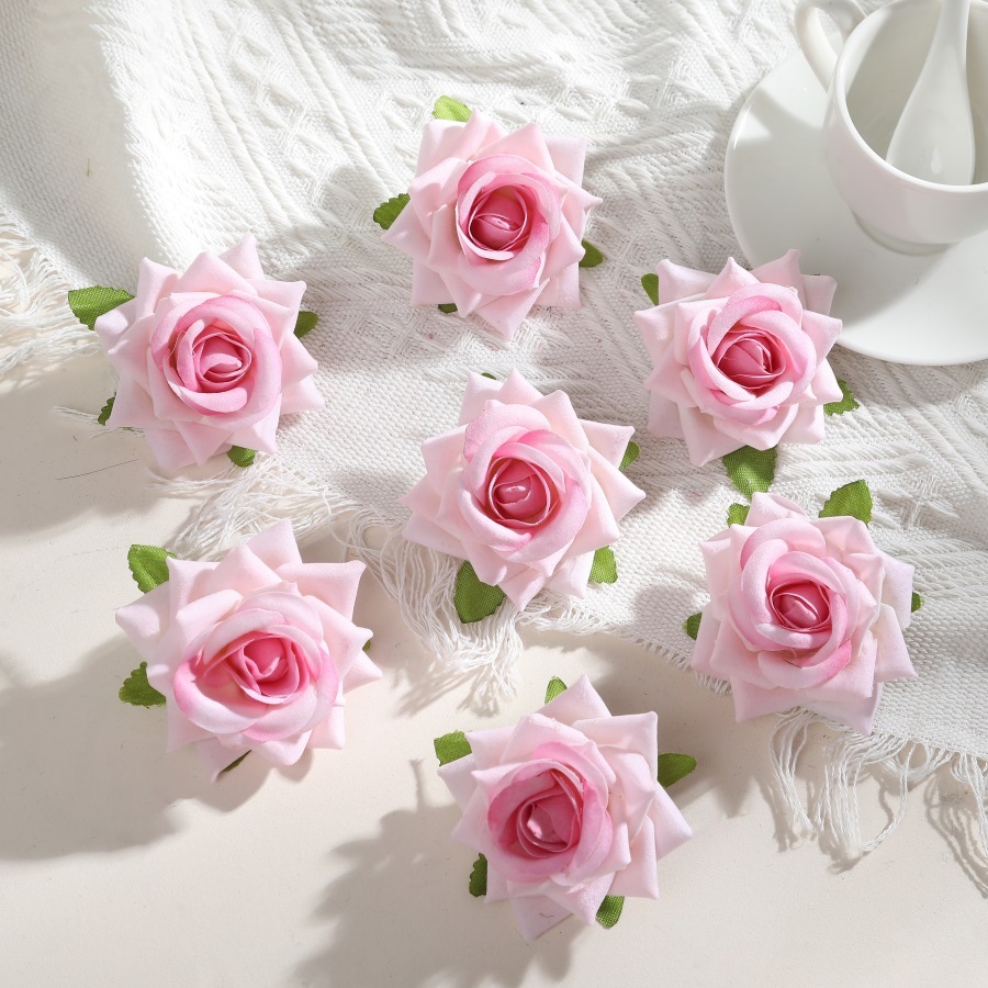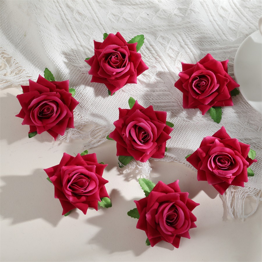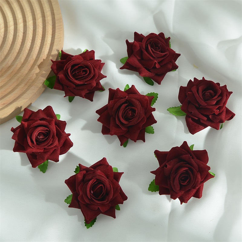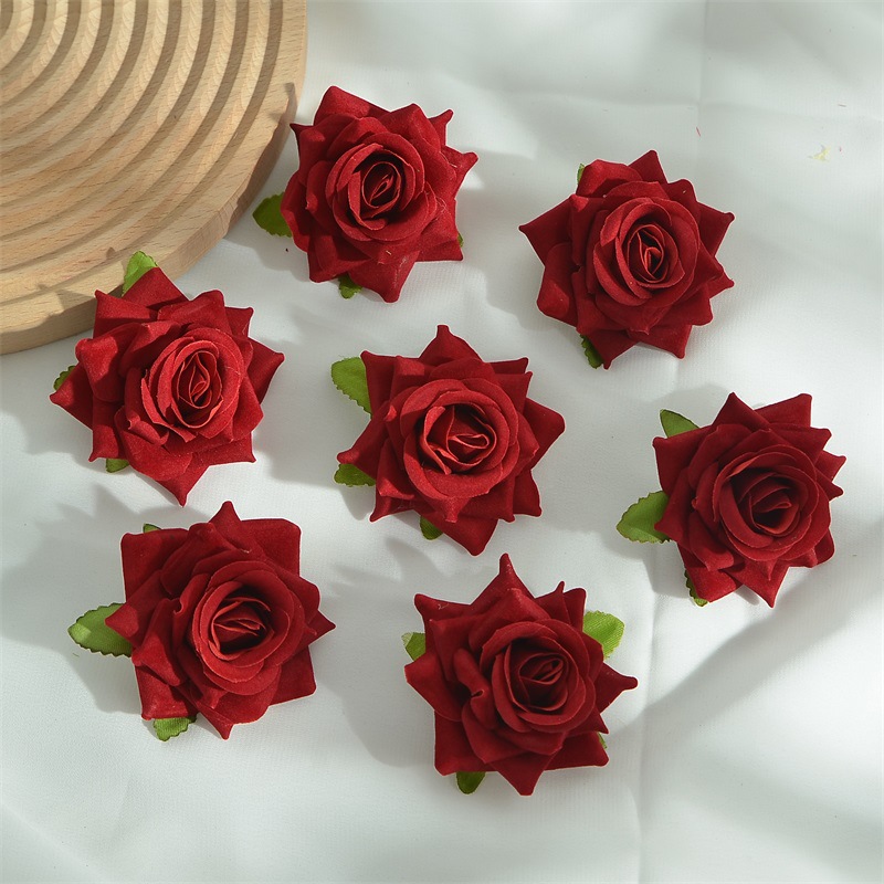 7厘米绒布仿真卷边玫瑰花头diy假花头饰簪花胸花配件婚房装饰