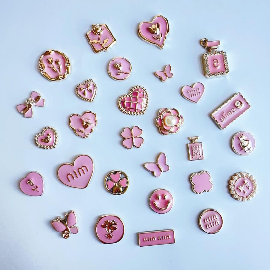 樱花粉色系字牌爱心蝴蝶香水发夹发抓洞洞鞋帽子包包服饰材料配件
