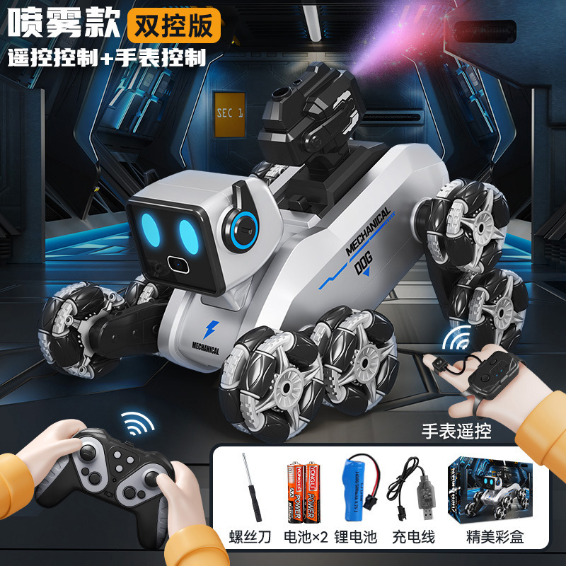 双电池-八轮机械狗(喷雾+遥控手柄+手表)