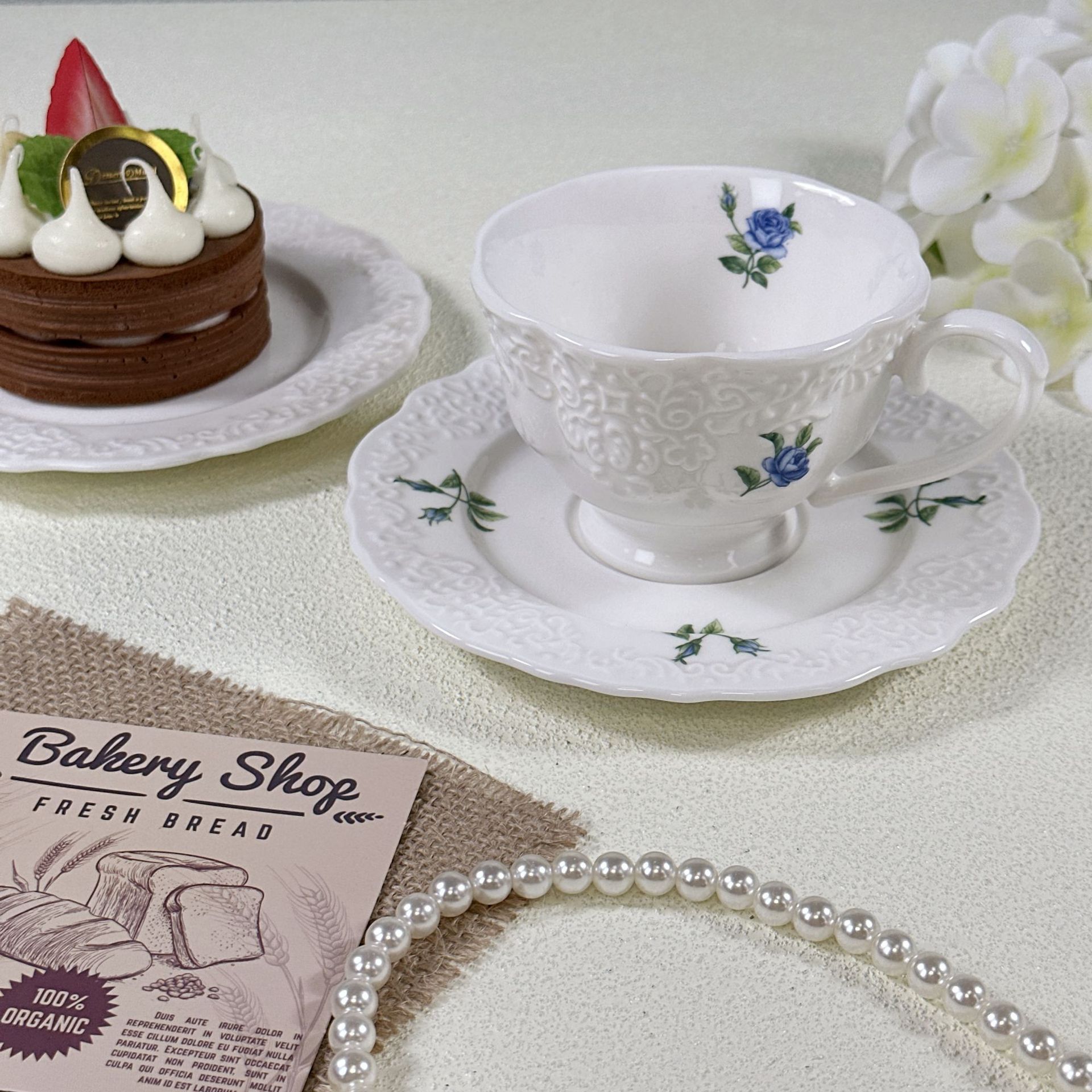 新品法式宫廷精致浮雕陶瓷咖啡杯茶杯咖啡厅点心糕点杯碟套装批发