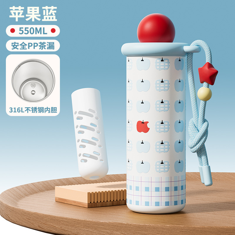 550ml-苹果蓝-自带茶隔