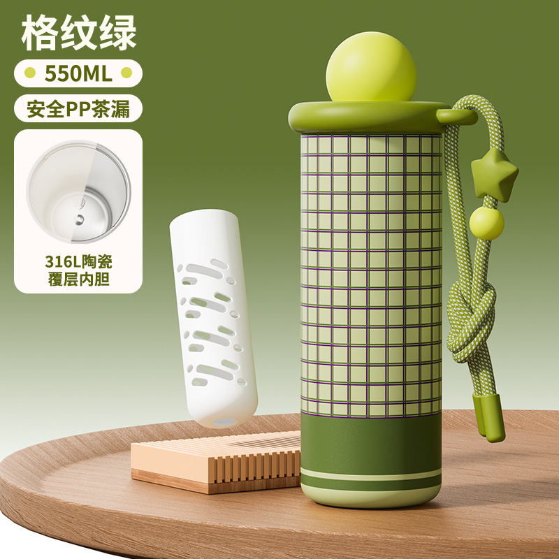 大牌同款提绳316不锈钢保温杯女生高颜值陶瓷内胆户外便携吸管杯