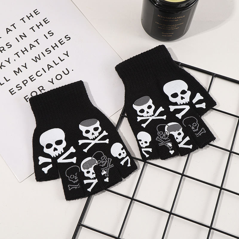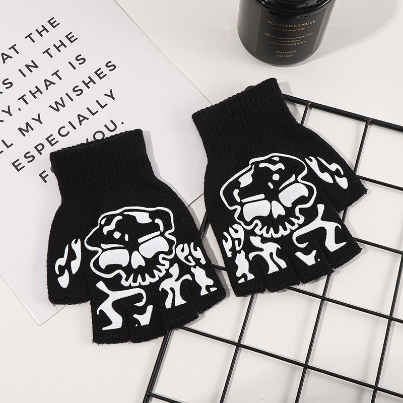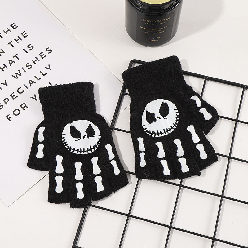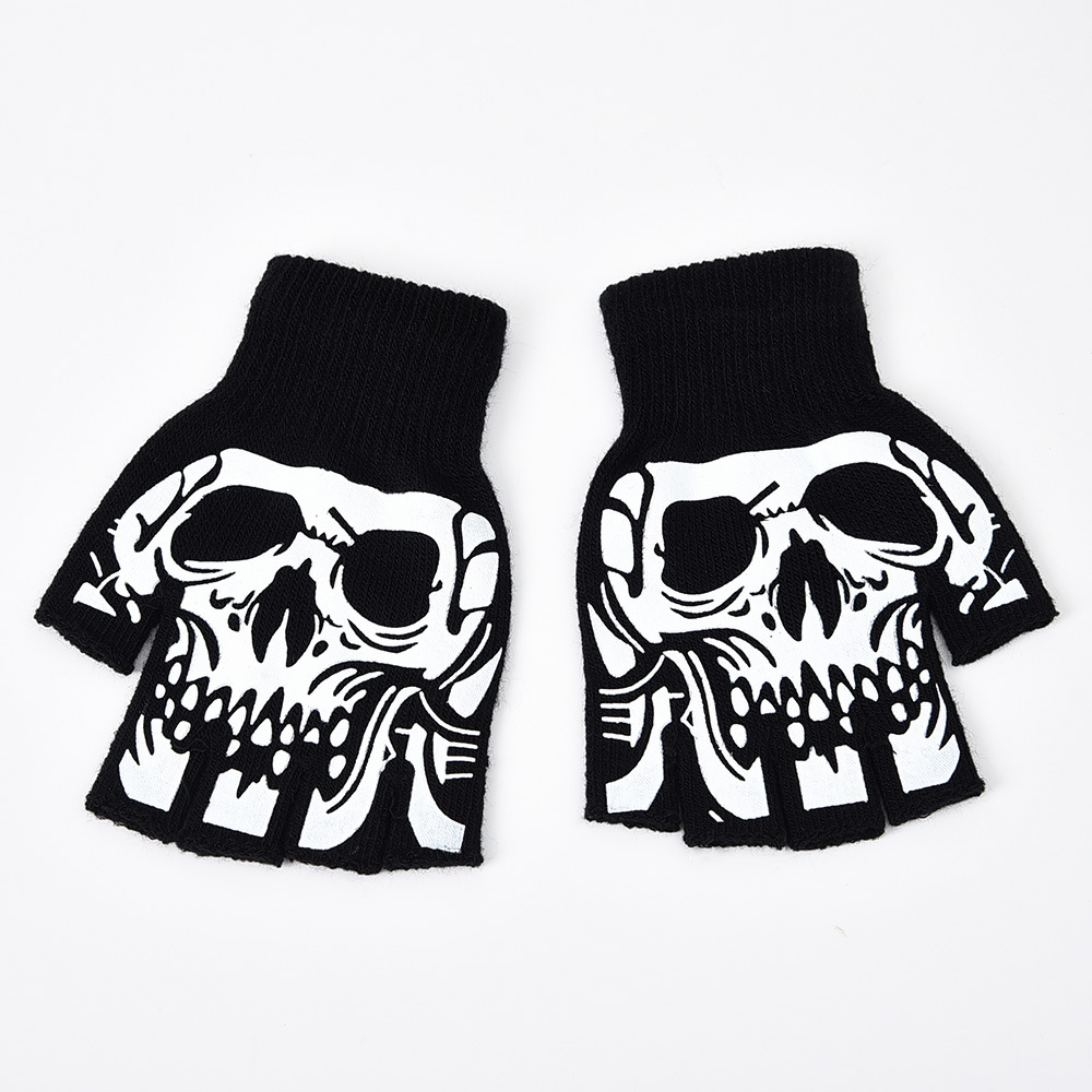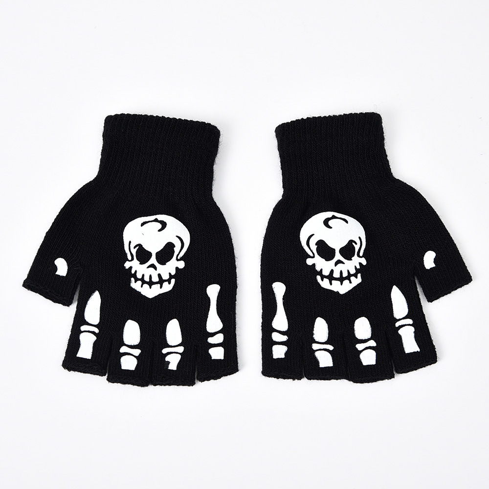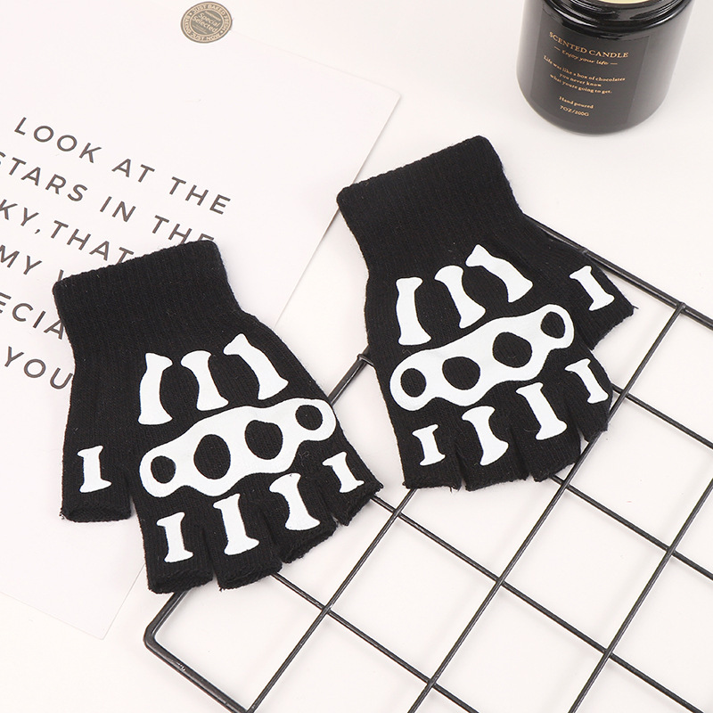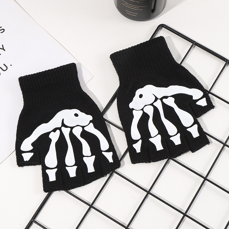 跨境新款创意万圣节骷髅头露指手套鬼爪半指成人手套打字点胶手套