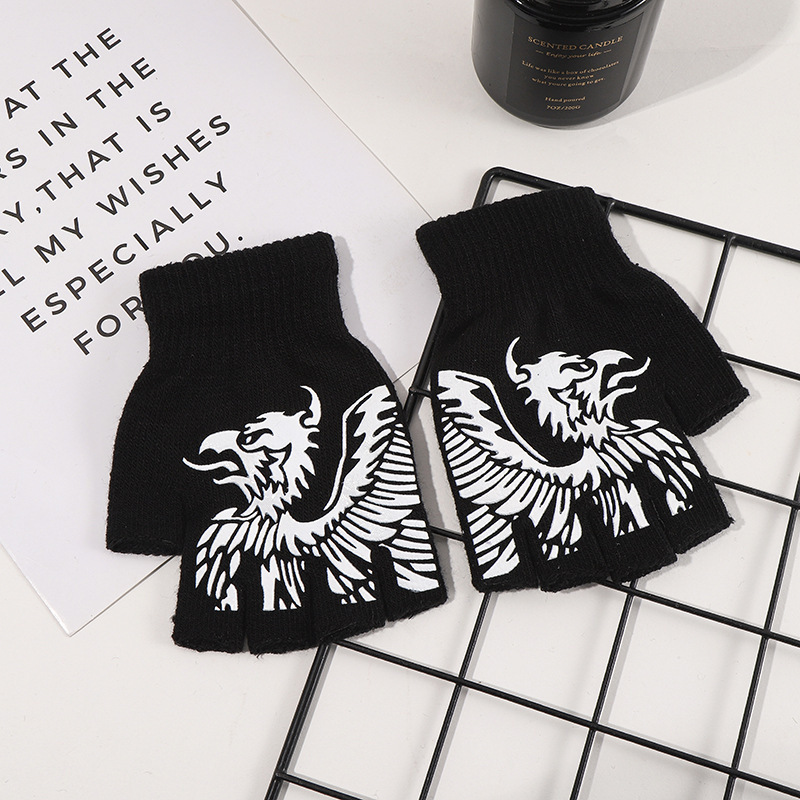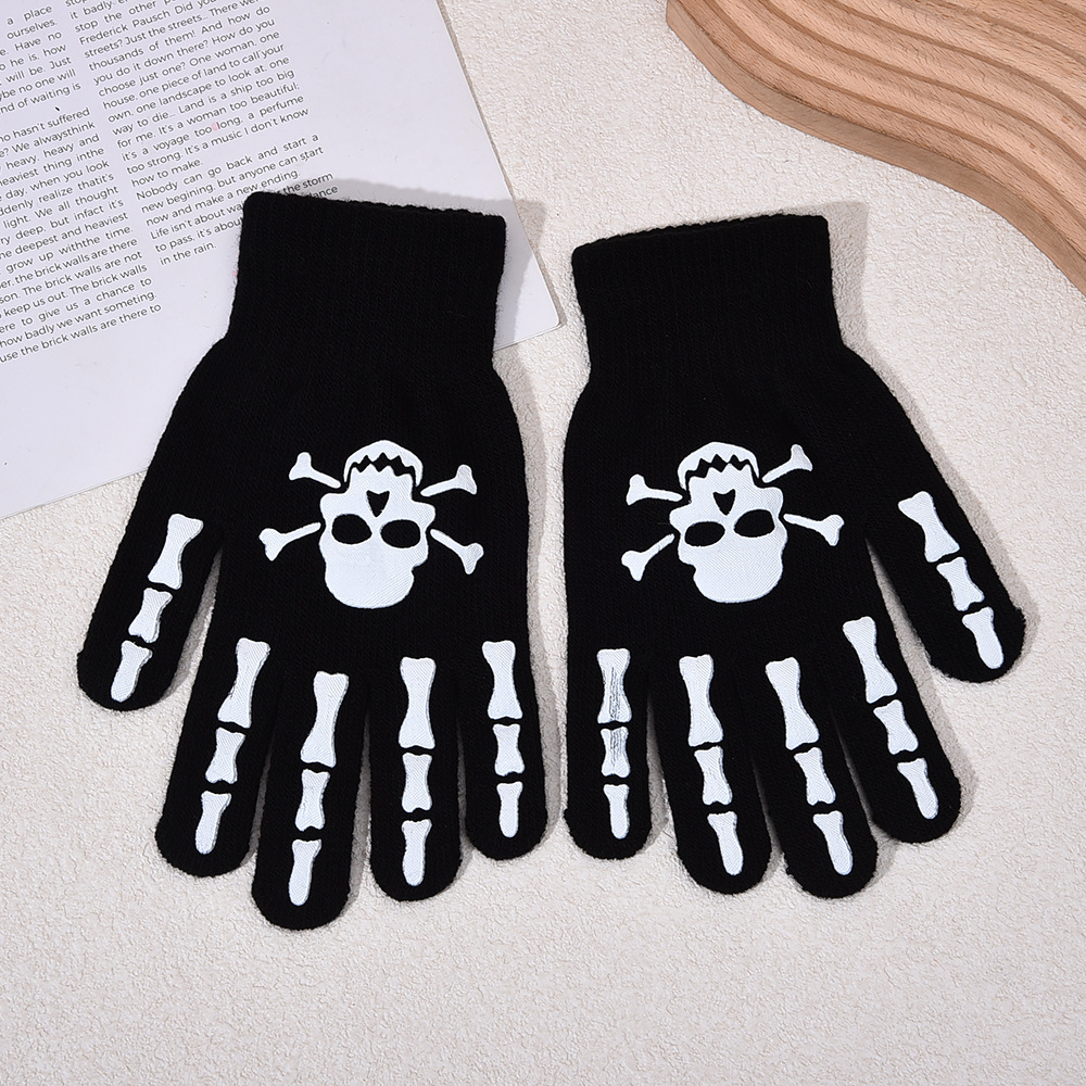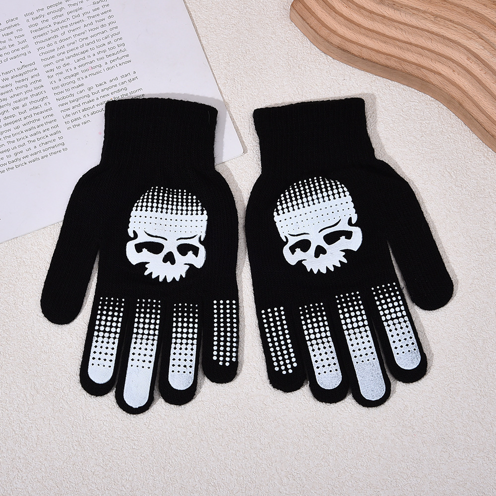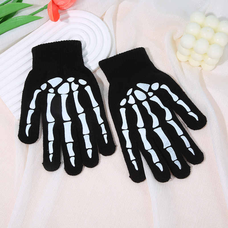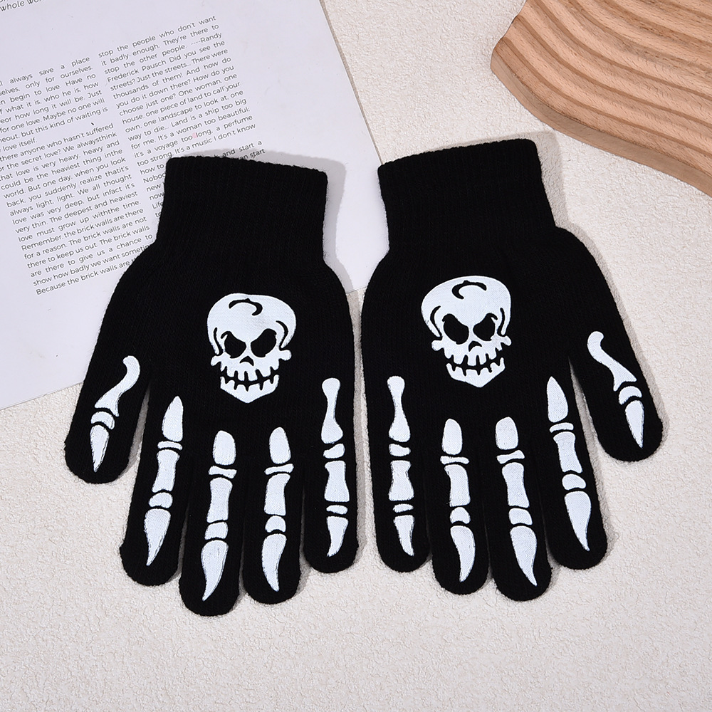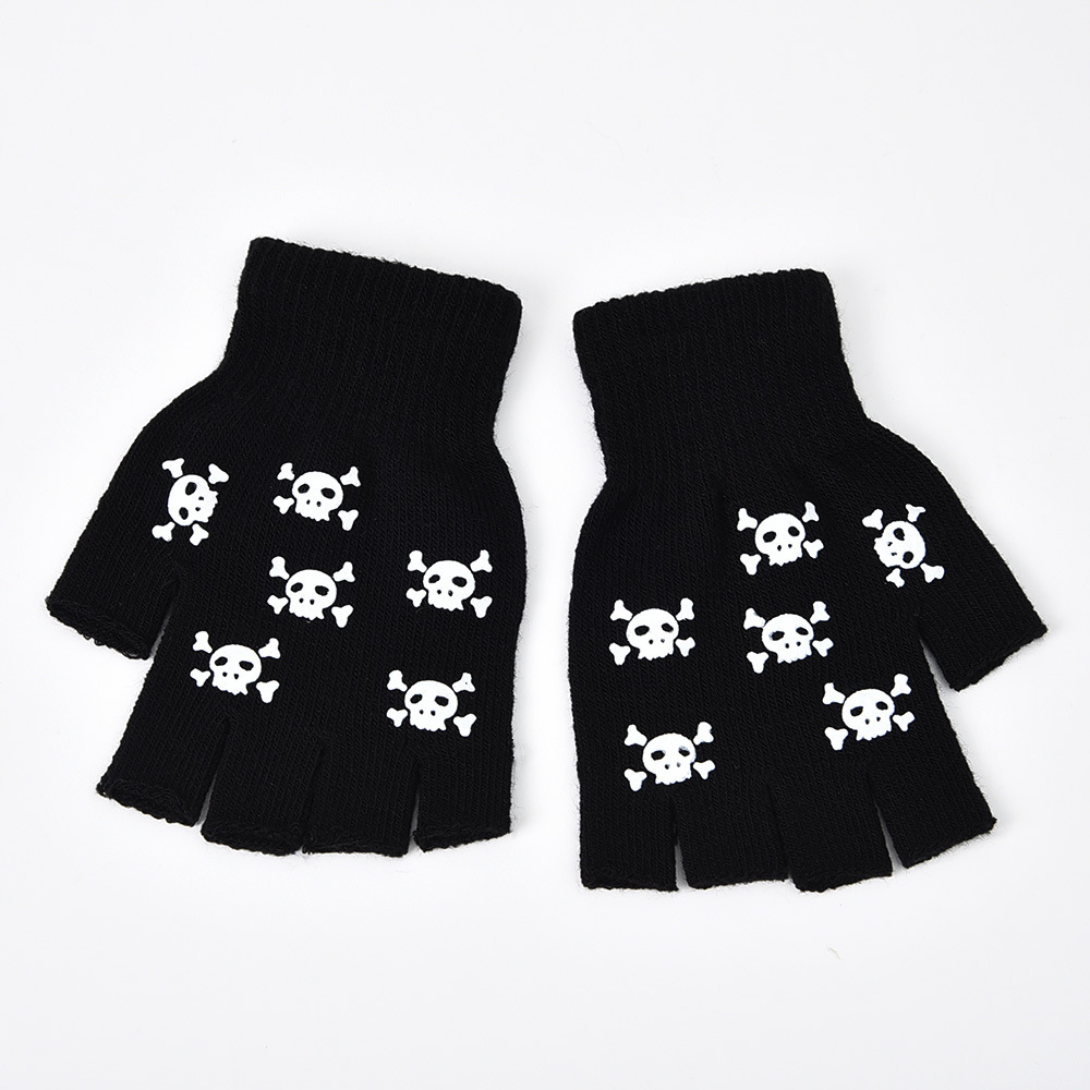 跨境新款创意万圣节骷髅头露指手套鬼爪半指成人手套打字点胶手套