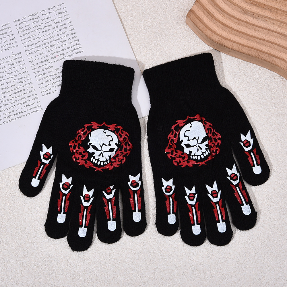 跨境万圣节骷髅头夜光手套鬼节搞怪手骨爪派对荧光装饰分指手套