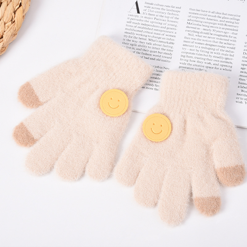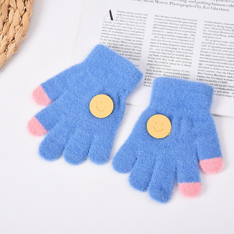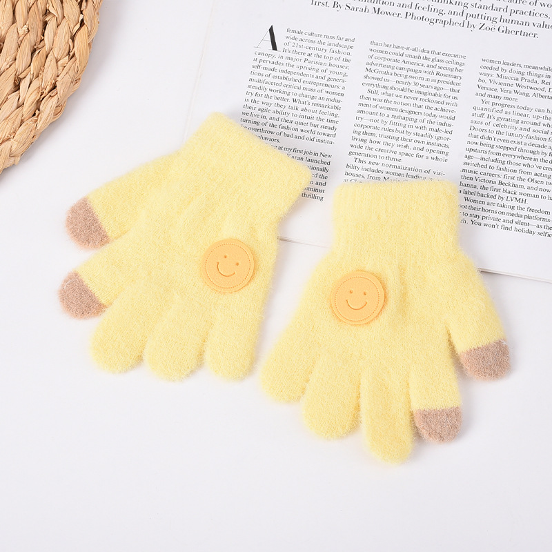 冬季笑脸儿童针织手套创意加厚户外运动保暖手套宝宝加绒五指手套