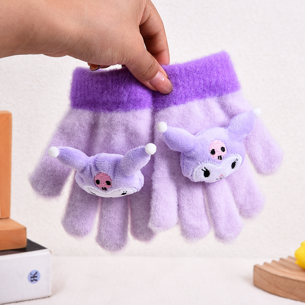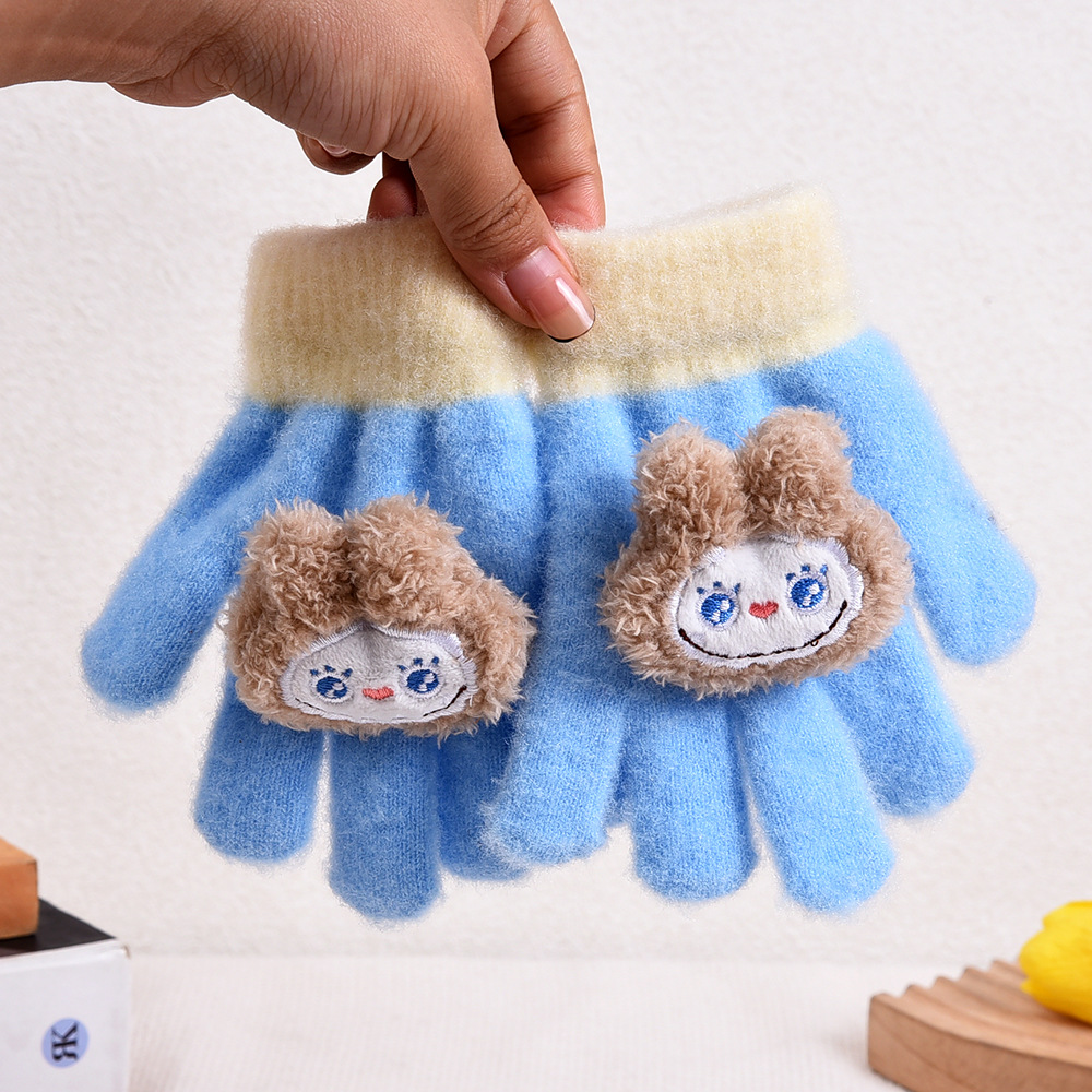 秋冬季儿童手套创意可爱分指手套韩版卡通拉布布加厚五指保暖手套