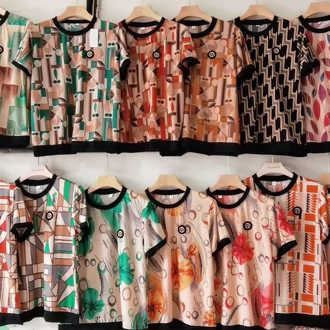 妈妈装夏季圆领大码印花短袖T恤新款中老年宽松洋气休闲时尚小衫