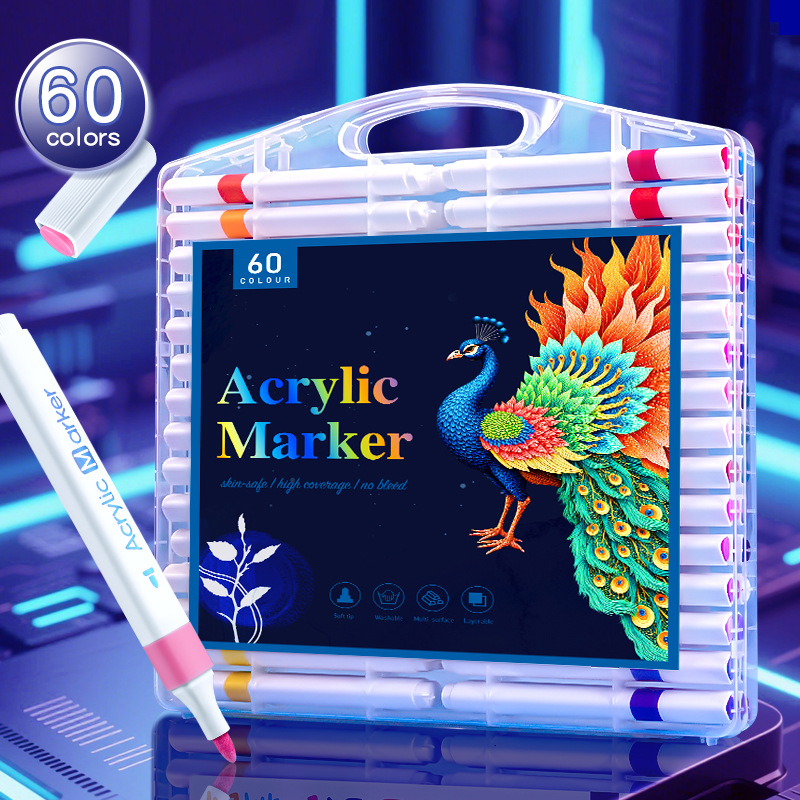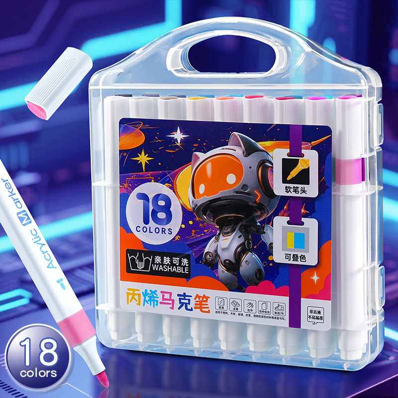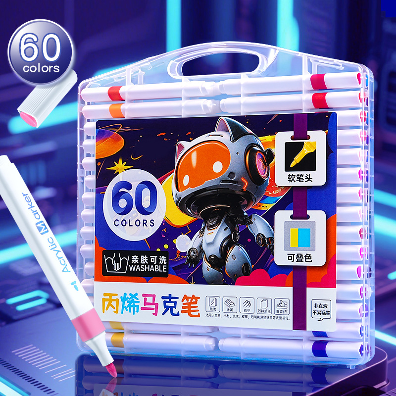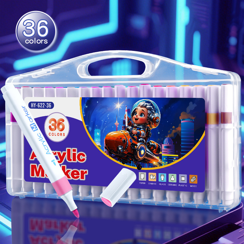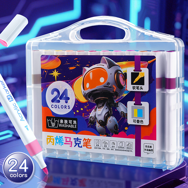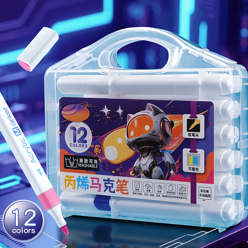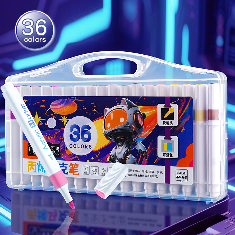 12/24/36/48色可洗记号笔三角杆丙烯马克笔绘画可叠色儿童记号笔