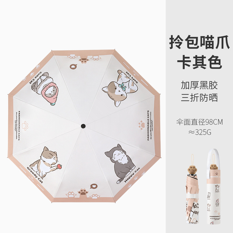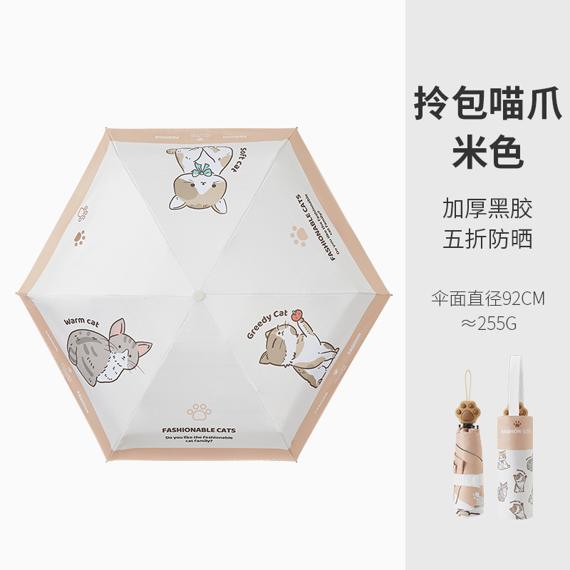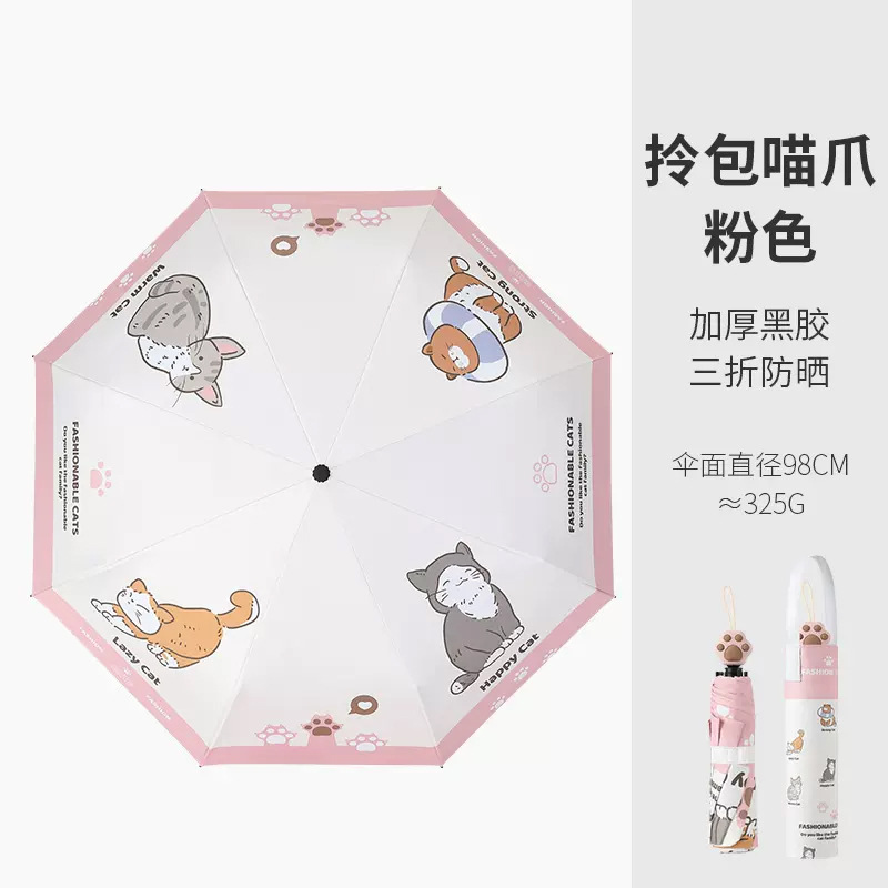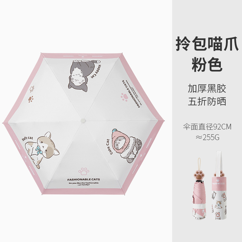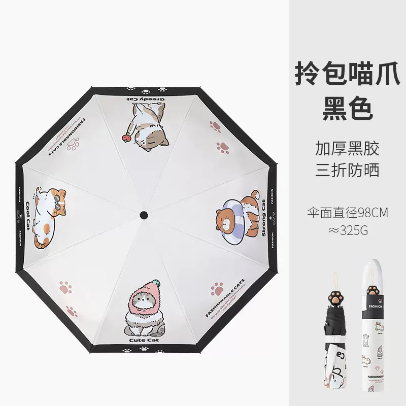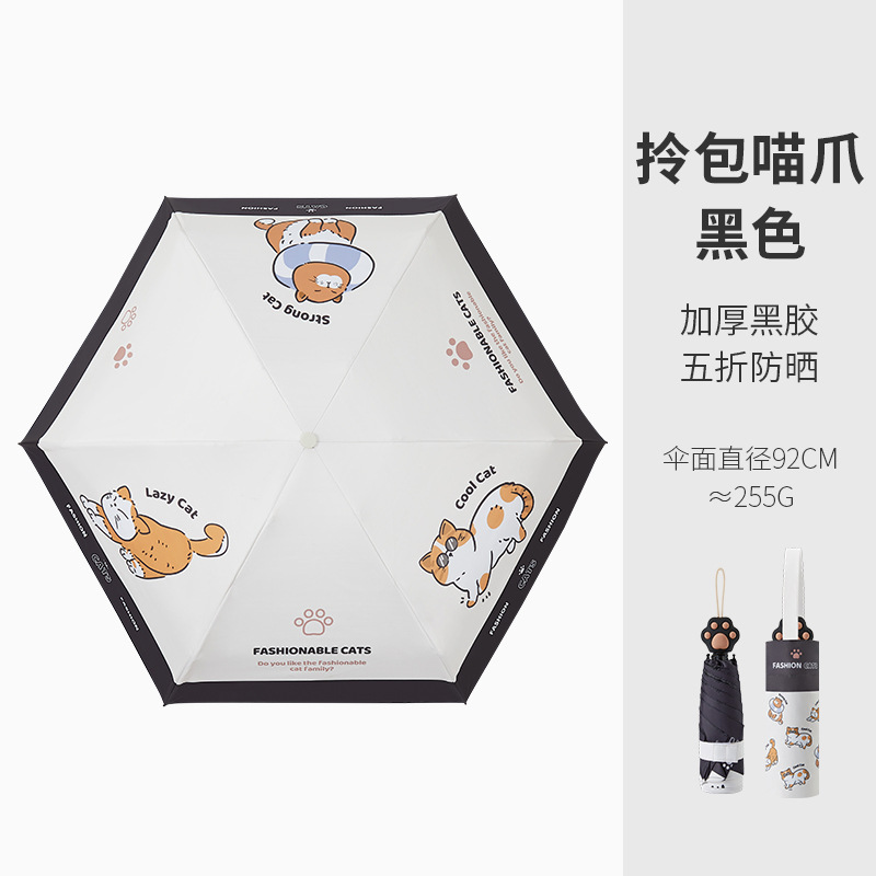 外贸爆款五折6骨猫咪黑胶伞女防晒晴雨两用遮阳伞卡通广告定制伞