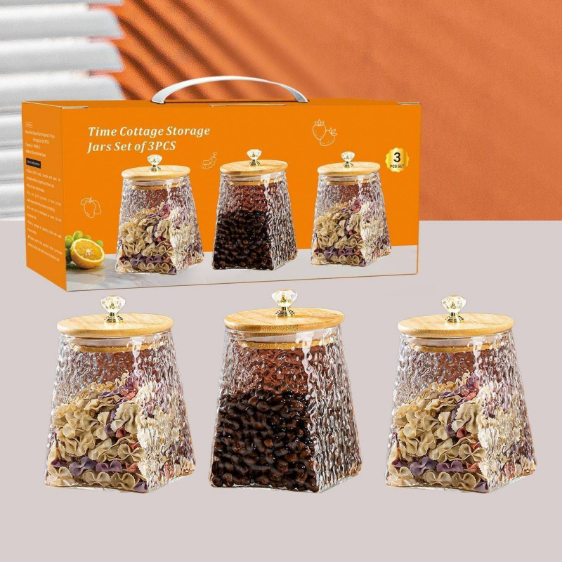 新品储物罐套装创意玻璃密封罐五谷杂粮防潮收纳罐乔迁礼品