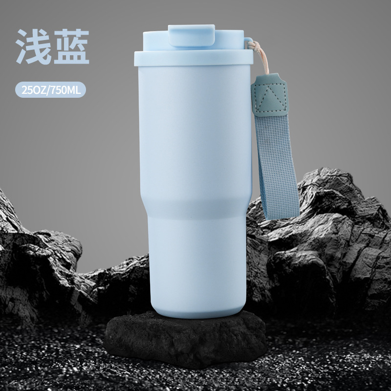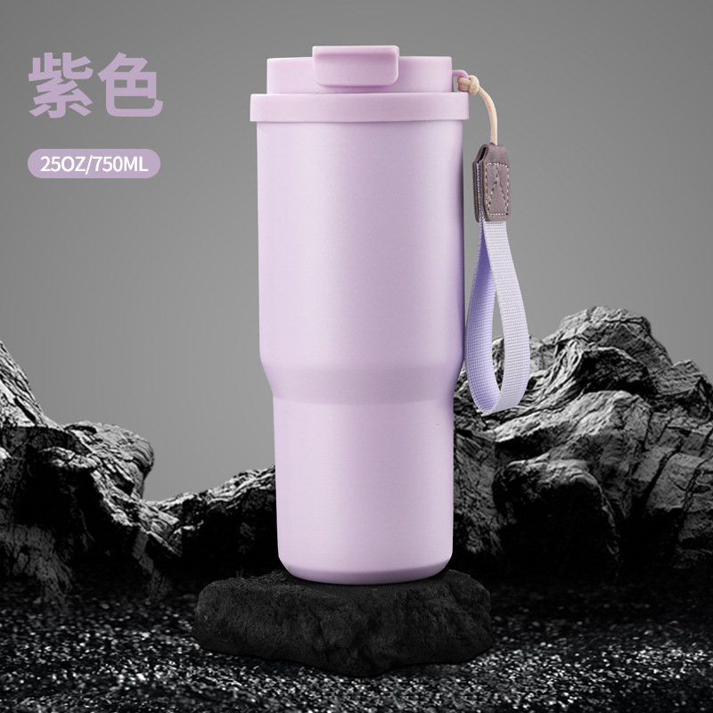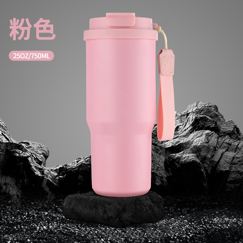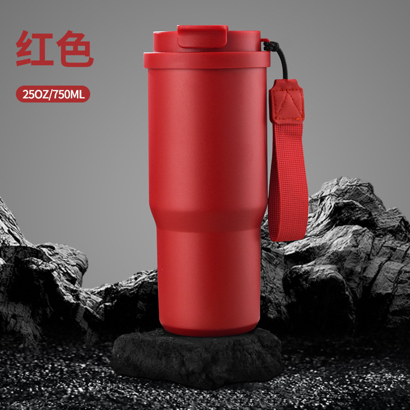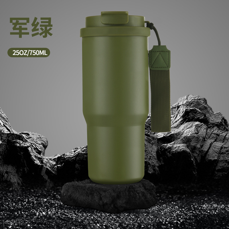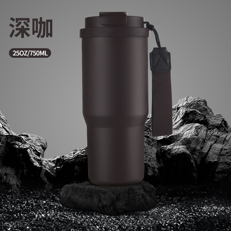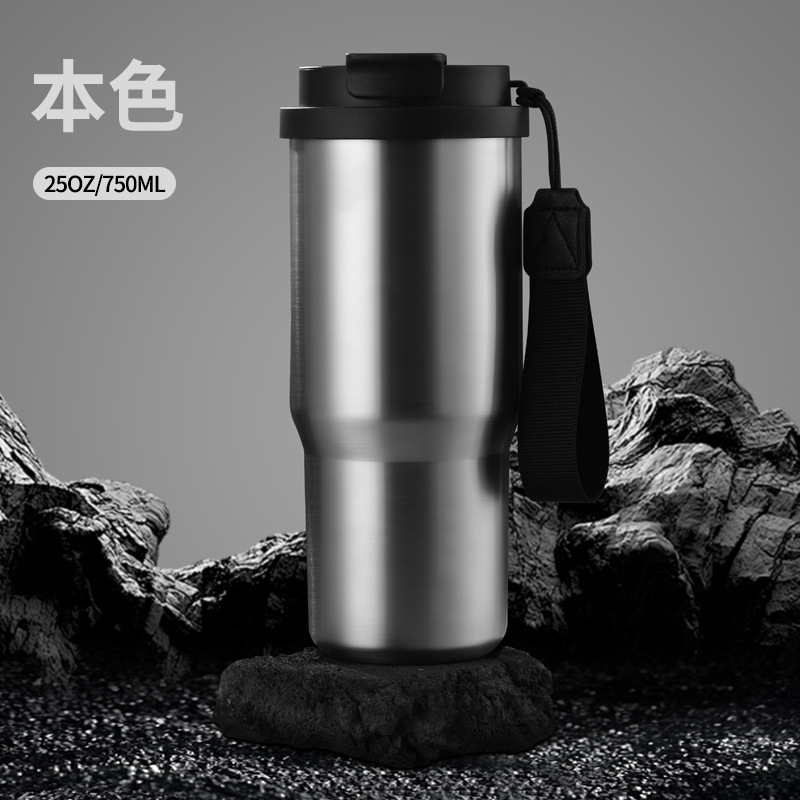 跨境新款6代汽车咖啡杯304不锈钢车载保温杯25oz带提绳便携汽车杯