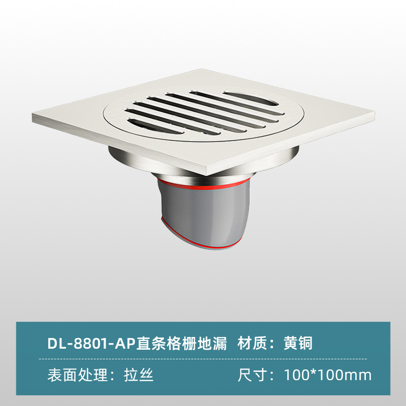 黄铜镍拉丝-大排量淋浴地漏+防虫臭芯【10*10cm】