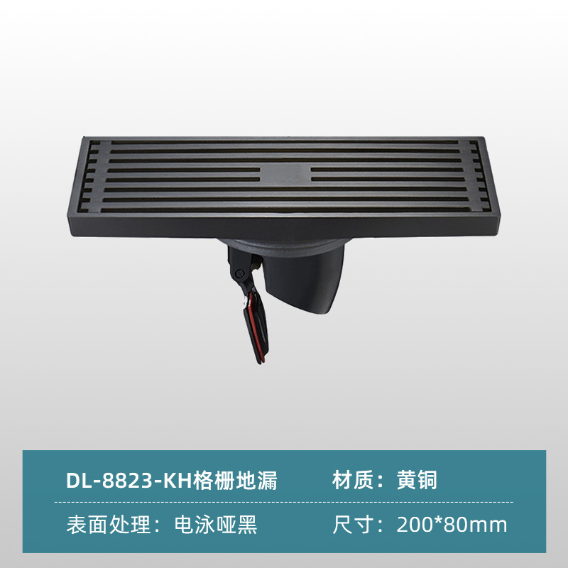黄铜电泳哑黑-大排量长条淋浴地漏+防虫臭芯【200*80mm】