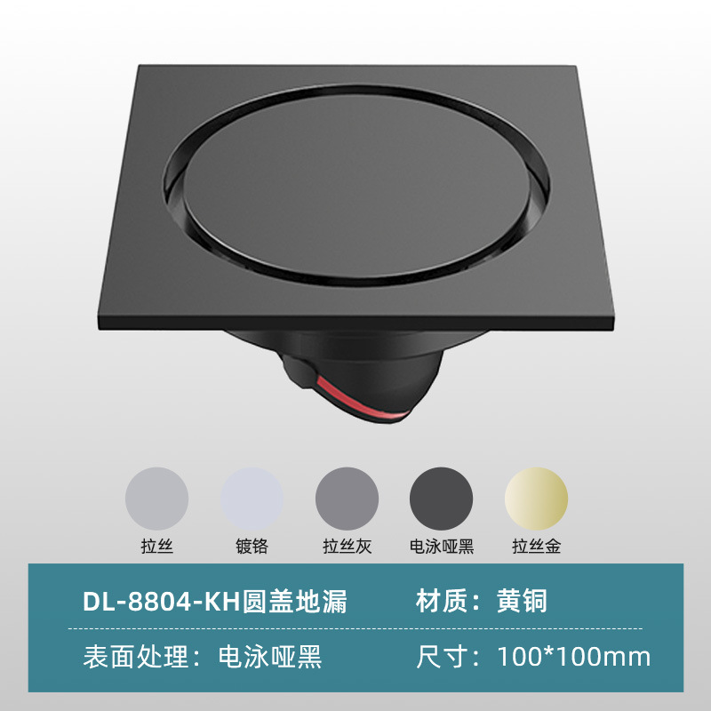 黄铜电泳哑黑--小隐圆盖干湿区通用地漏+防虫臭芯【10*10cm】